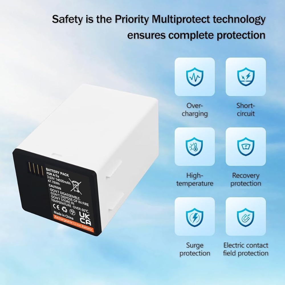 حماية متعددة لحزمة شاحن ArloBattery: تتميز ArloBattery بـ 10 طبقات من الحماية (الشحن الزائد، والدائرة القصيرة، وارتفاع درجة الحرارة، وحماية الاسترداد، وحماية مجال الاتصال الكهربائي، وحماية قلب البطارية، وحماية من زيادة التيار، وما إلى ذلك) بجودة عالية ومقاومة للحريق. هيكل مقاوم، يضمن الحماية الكاملة لك ولأجهزتك