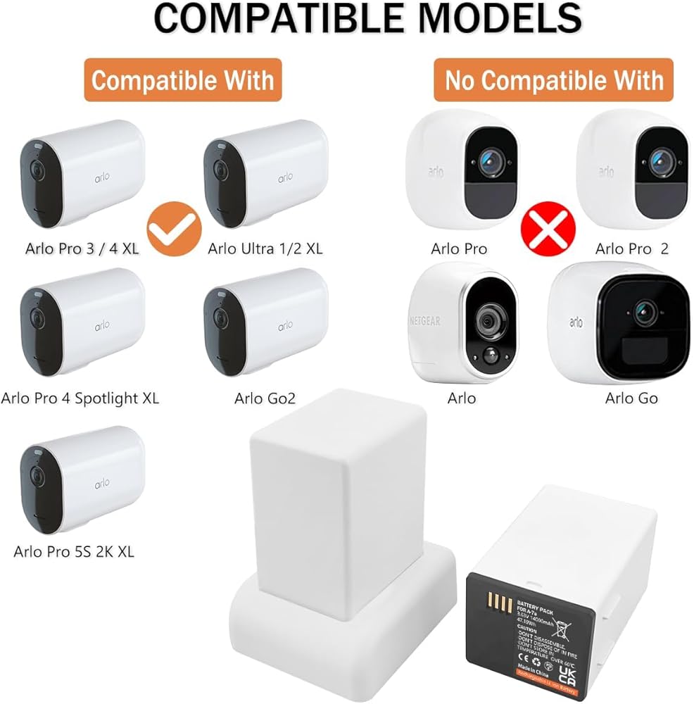 بطارية بديلة متوافقة مع بطارية Arlo pro 3، بطارية Arlo pro 4، بطارية Ultra Ultra 2: حزمة واحدة من البطاريات القابلة لإعادة الشحن المتوافقة مع بطارية Arlo، بطارية ليثيوم أيون بوليمر 4800 مللي أمبير في الساعة: جهد الشحن المحدود: 4.40 فولت؛ طاقة الطاقة المقدرة: 18.48 وات في الساعة؛ الجهد الاسمي: 3.85 فولت