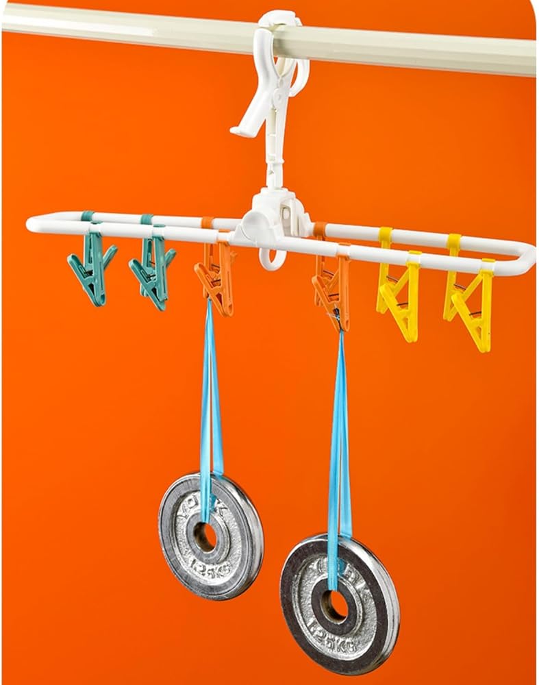 رف تجفيف دوار - مشبك دوار قابل للدوران 360 درجة مناسب لاستخدامك، يمكن تدوير شماعة المشابك البلاستيكية للجوارب في أي مكان كما أنه من السهل تعليقها في الحمام أو الشرفة أو الخارج
