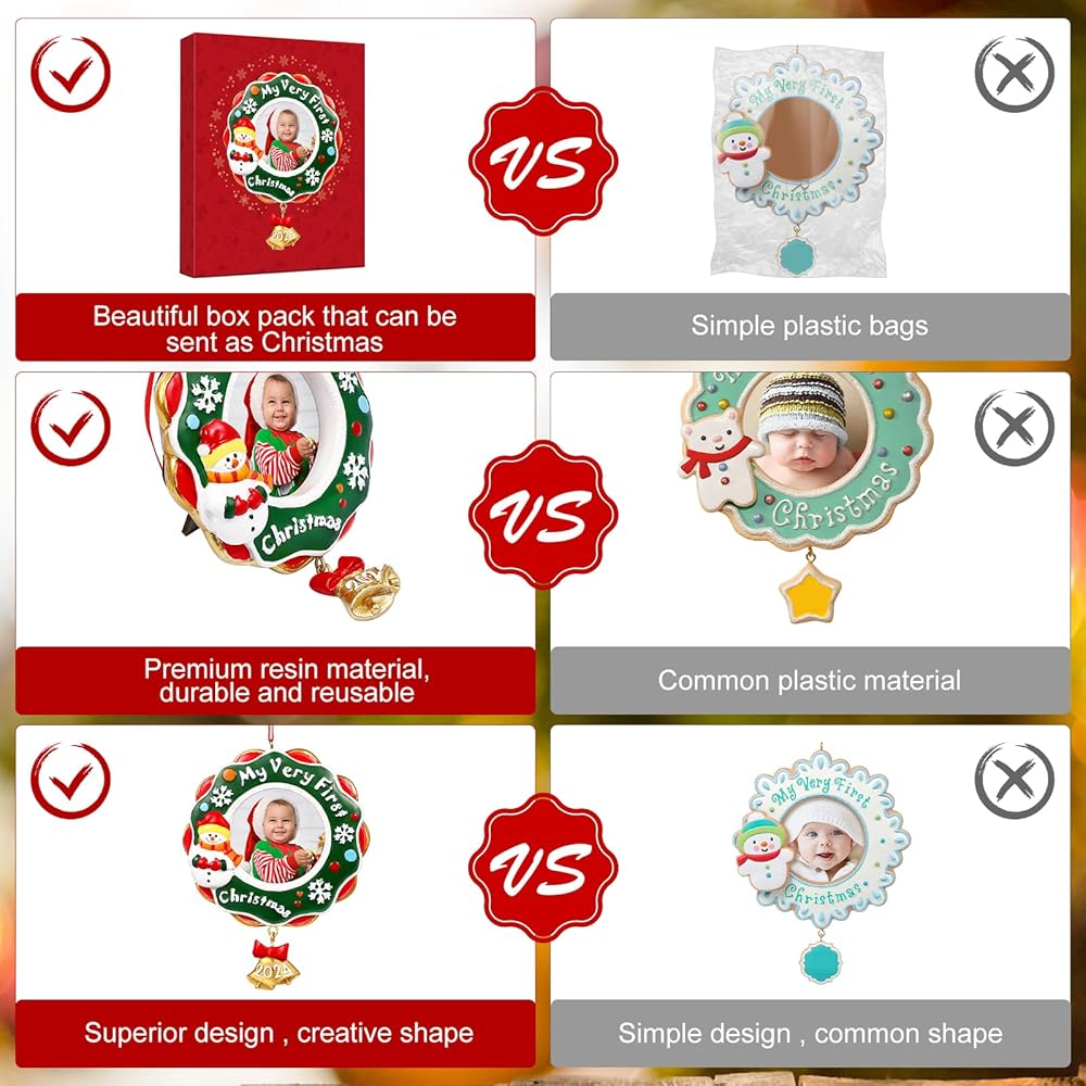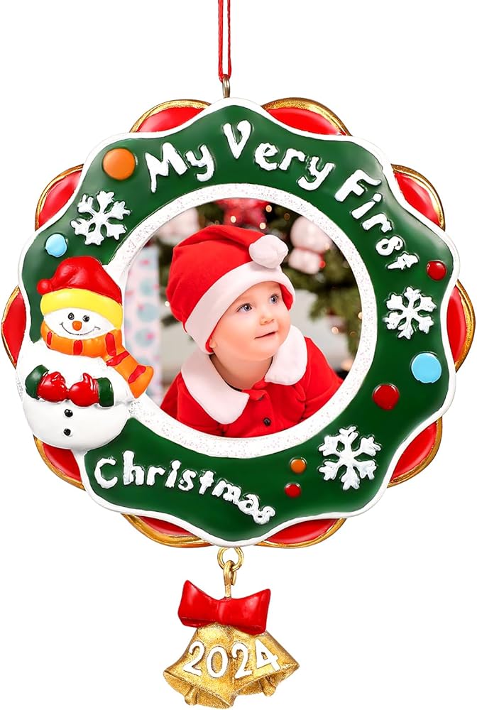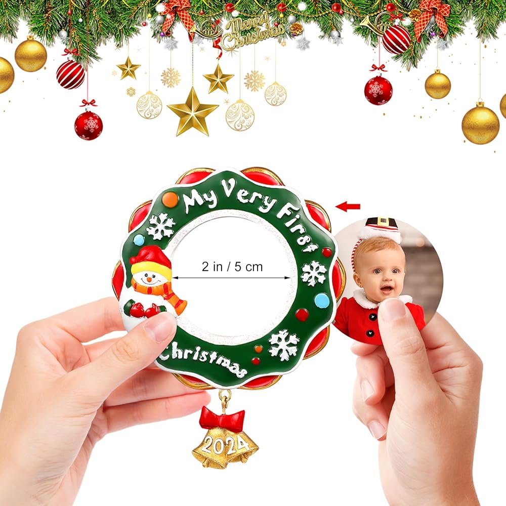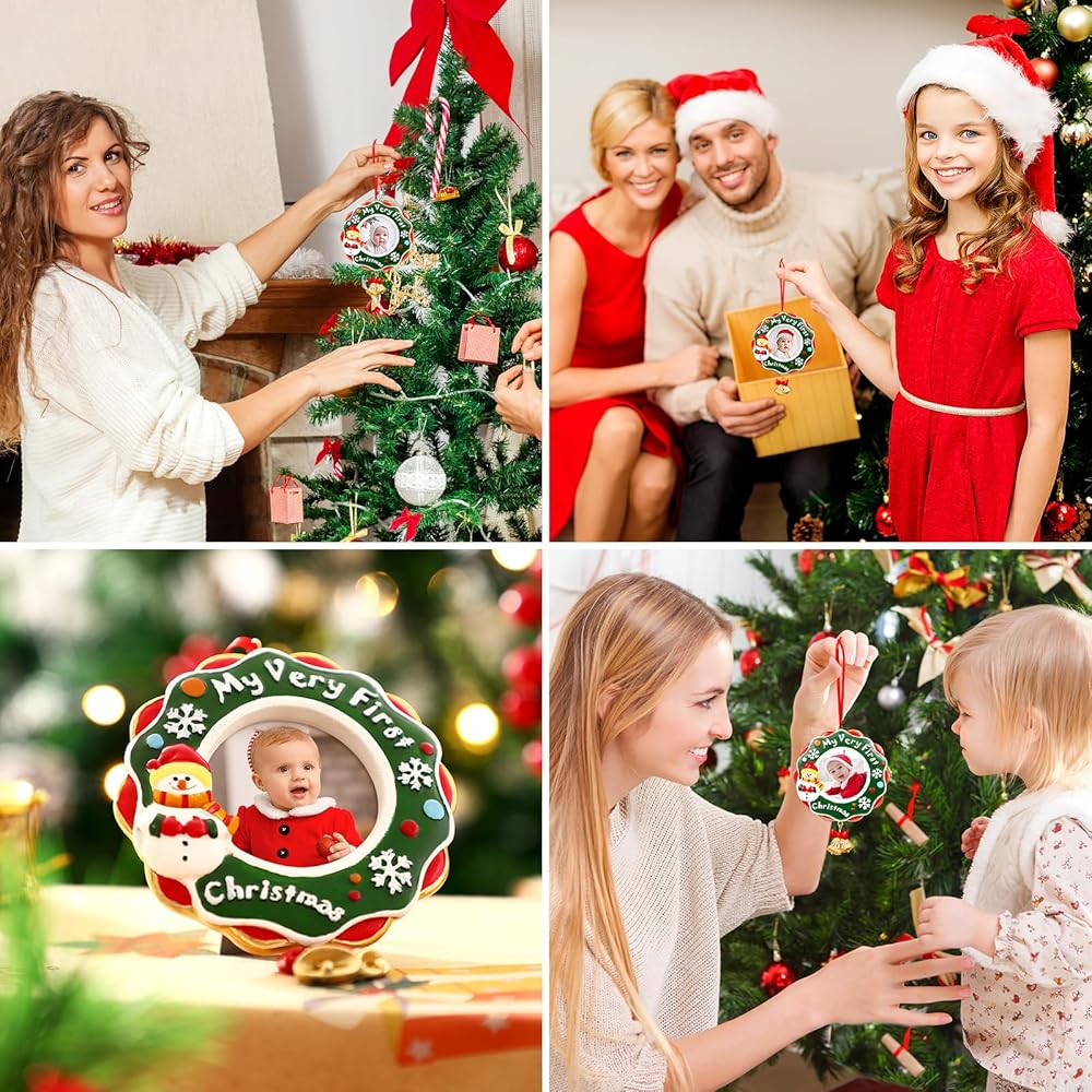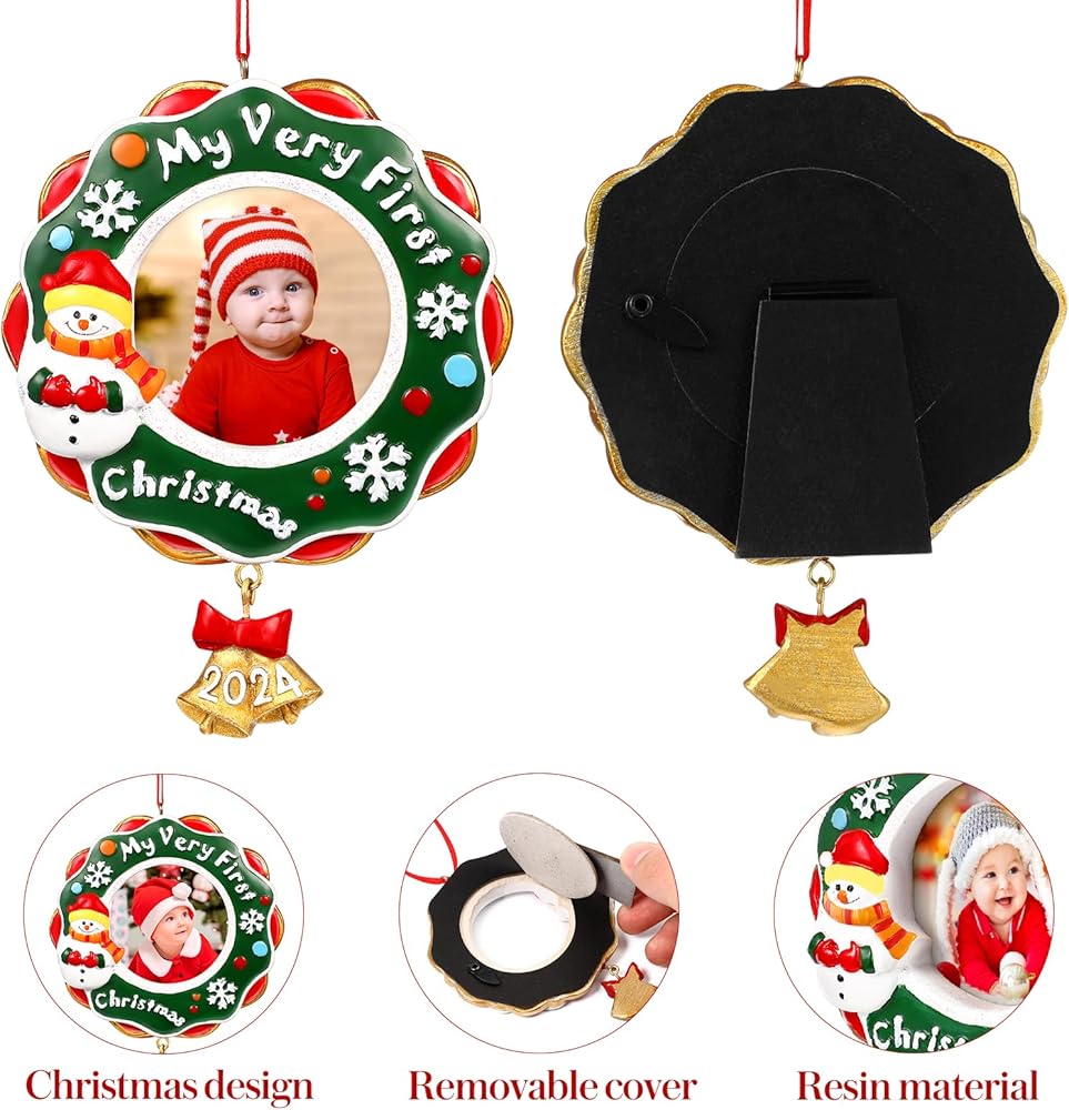 WHAT YOU GET:You will get one Christmas themed picture frame ornament, you can put your babys cute photo into it and on the xmas tree