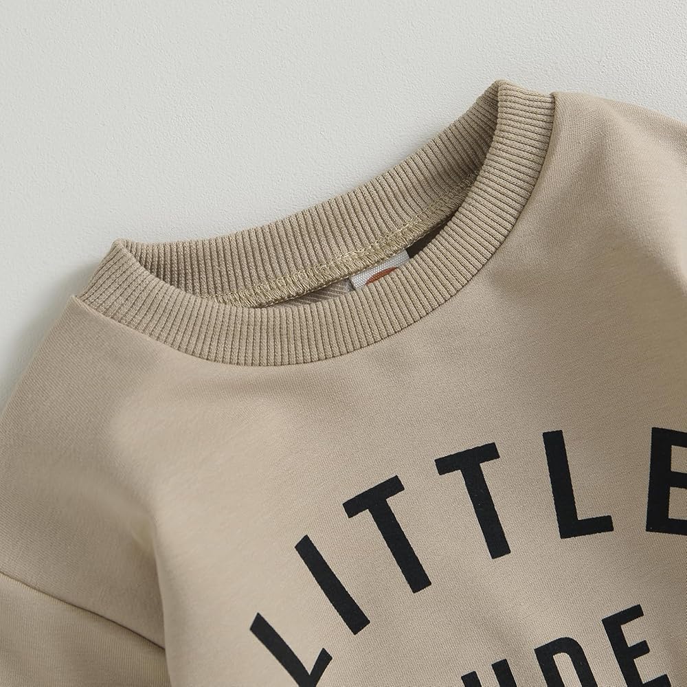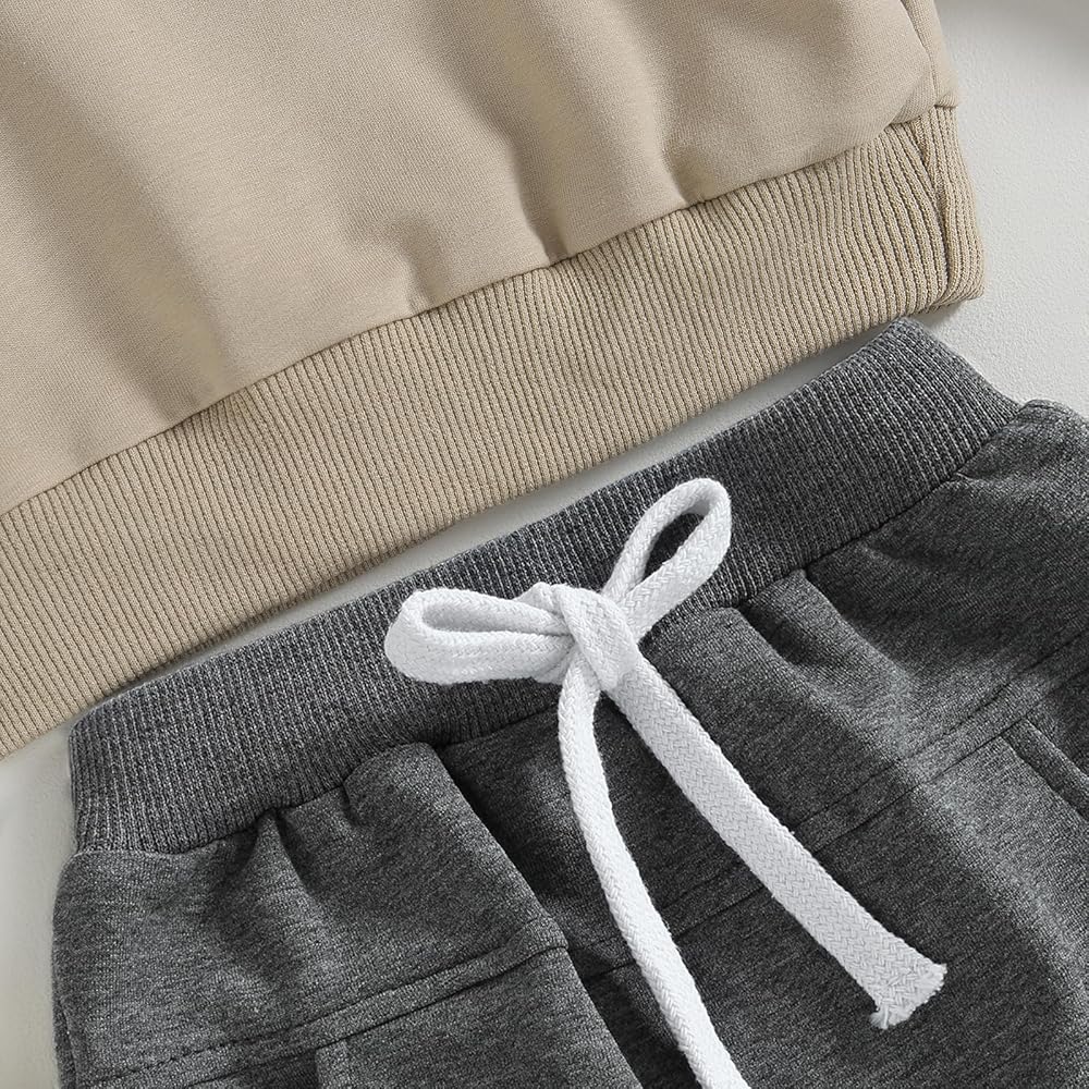 ملابس Karwuiio للأطفال الصغار من الأولاد والبنات، ملابس الخريف والشتاء، سويت شيرت بأكمام طويلة وبنطلون، مجموعة ملابس من قطعتين (B-كاكي، 2-3 سنوات)