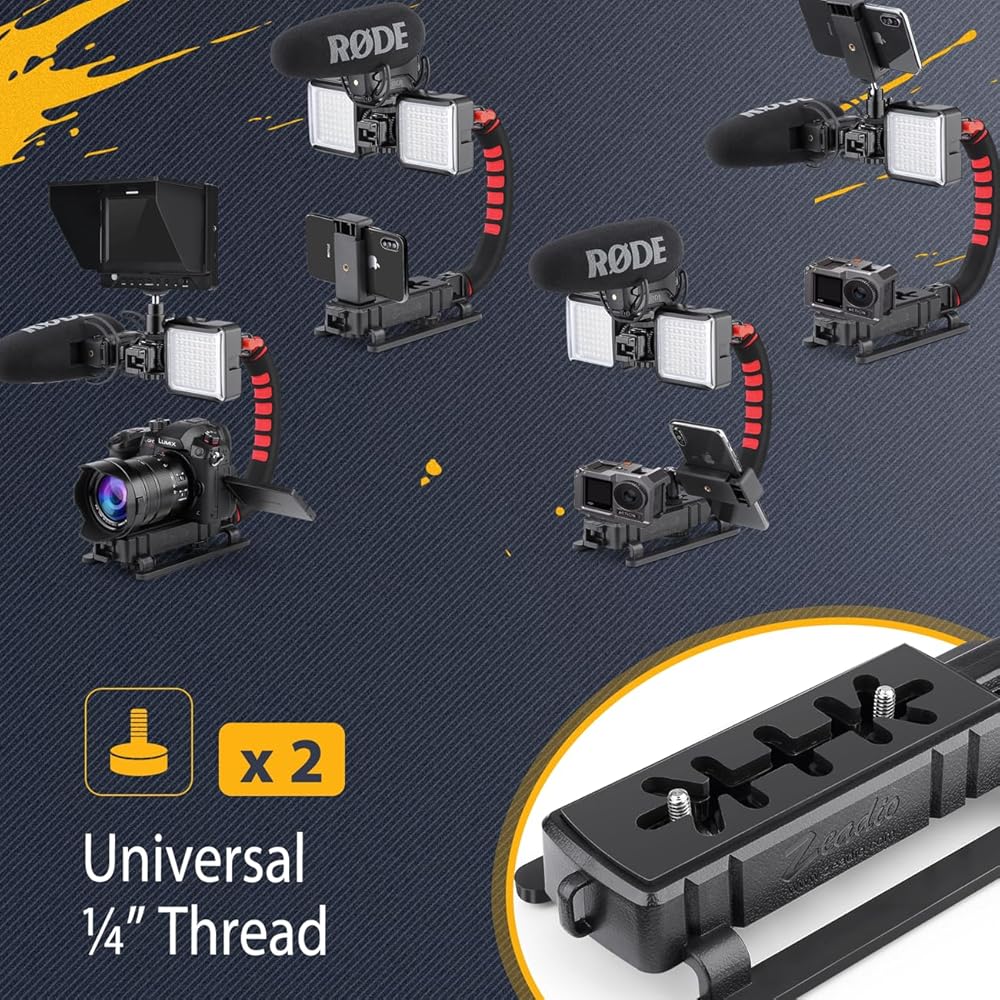 مثبت Zeadio الثلاثي للأحذية الباردة مع جهاز فيديو للهواتف الذكية لجميع كاميرات الفيديو الرقمية ذات العدسة الأحادية العاكسة (DSLR) والكاميرات الرياضية وجميع الهواتف الذكية