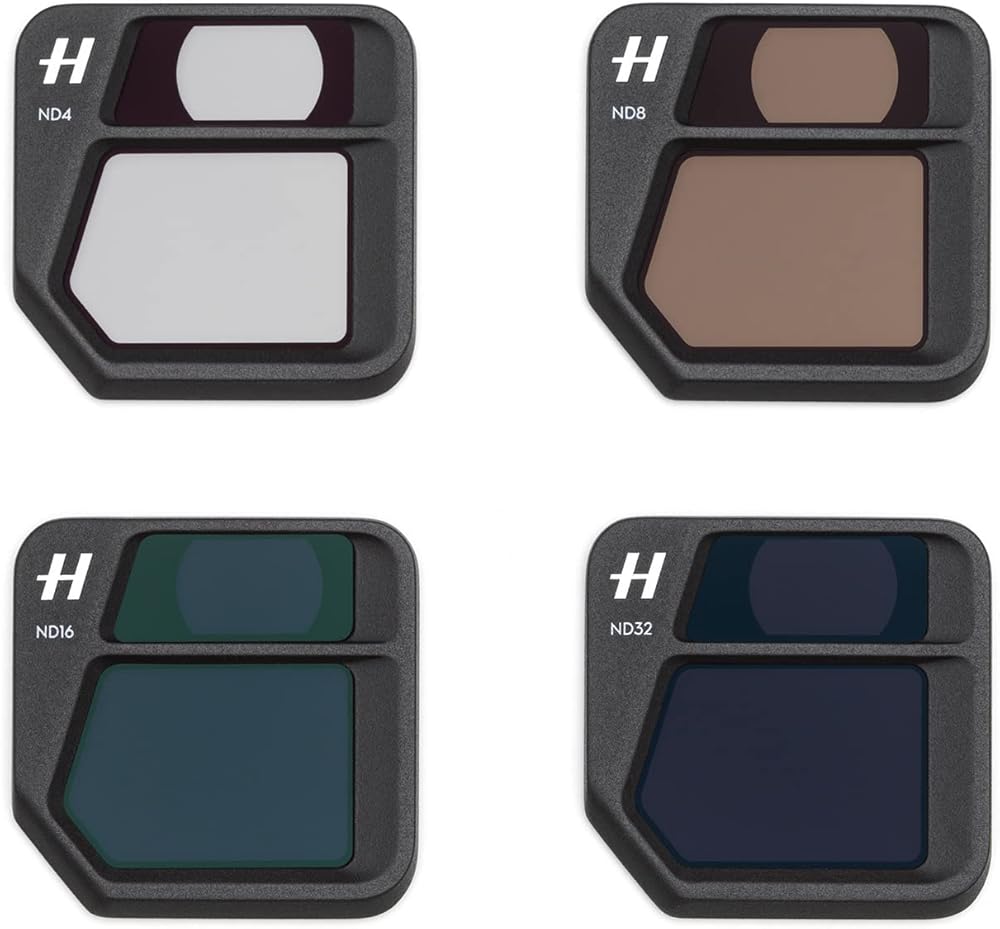 The ND Filters Set includes ND4, ND8, ND16, and ND32.These high-quality, light-reducing ND filters provide advanced users with precise control over shutter speed, and ensure clean footage even when the shutter opens to 180° with low ISO during recording.