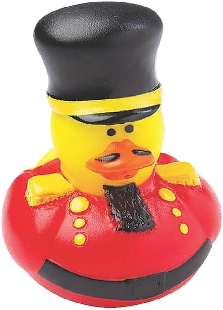 Delight your loved ones with these whimsical Christmas Nutcracker Rubber Ducks - the perfect holiday stocking stuffer, reward, party favor, prize box, or treasure box filler! This set of three rubber ducks features festive nutcracker soldier designs, adding a touch of playful charm to any Christmas celebration. Measuring 2 inches wide by 2 inches long by 2.5 inches tall, these durable rubber ducks are ideal for bath time fun or as adorable decorative accents. Bring a smile to children's faces or surprise your friends with these delightful Christmas-themed rubber duckies.