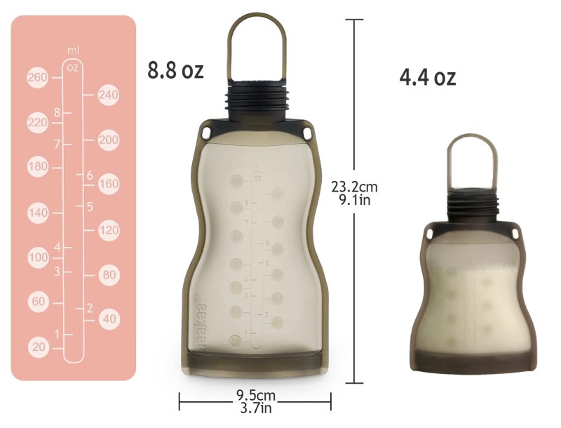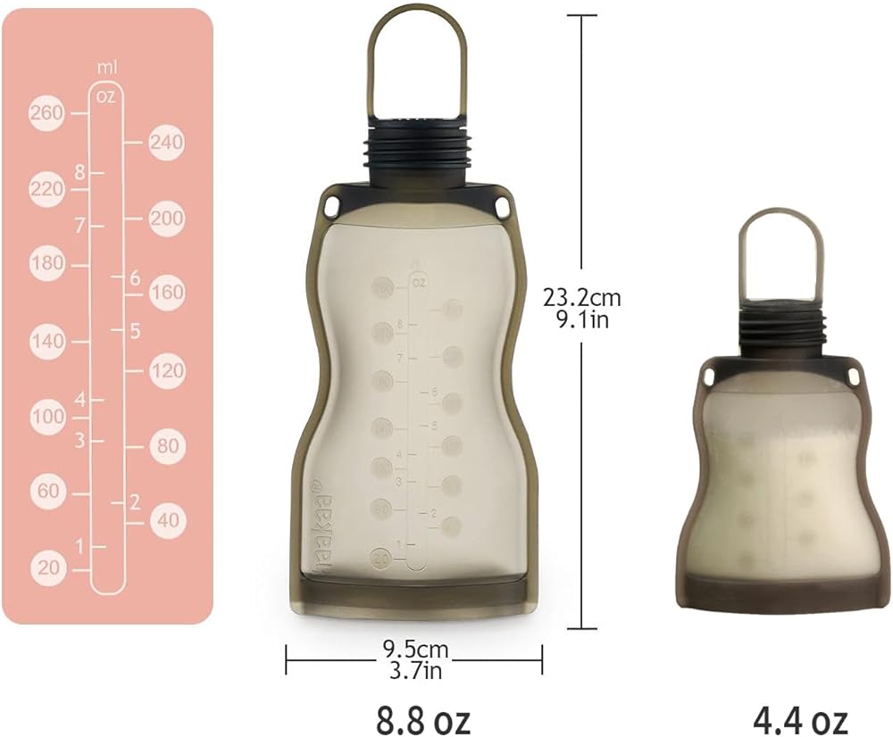 • سعة مزدوجة: اختر من بين الخيارات الكبيرة 8.8 أونصة والصغيرة 4.4 أونصة. مريحة للتغذية أثناء التنقل، مما يجعل من السهل حمل وتغذية طفلك الصغير أينما كنت.
