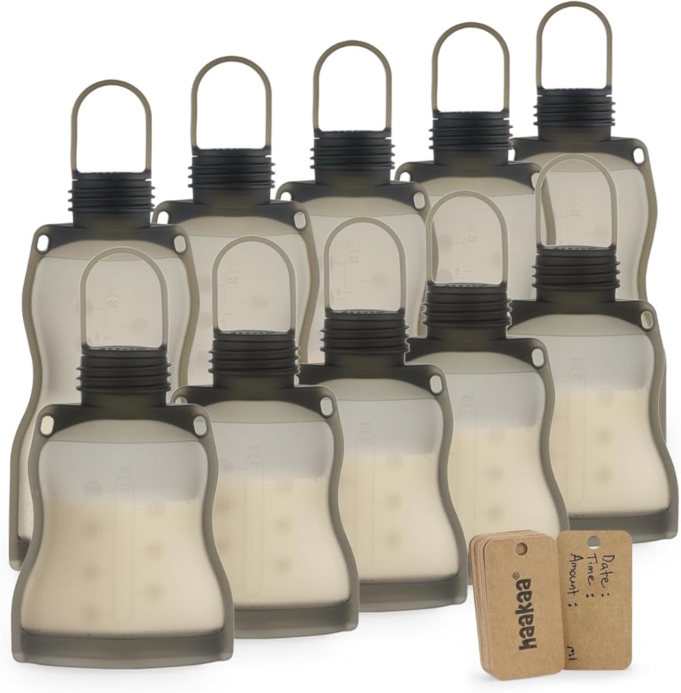 مجموعة أكياس تخزين حليب الثدي من السيليكون من هاكا (8.8 أونصة و4.4 أونصة) - حقيبة فريزر قابلة لإعادة الاستخدام للأمهات المرضعات - حقيبة طعام الأطفال اللذيذة - حقيبة مضخة الثدي - خالية من مادة BPA - مضادة للتسرب - 10 قطع