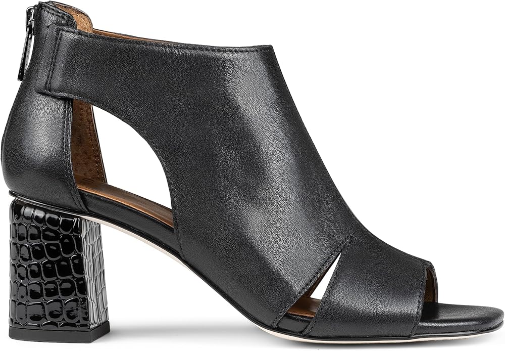 • ELEGANT DETAILS: With a stable block heel and beautifully placed cutouts, these heeled sandals offer a versatile style that enhances any outfit. The convenient back zip closure adds a chic finishing touch.