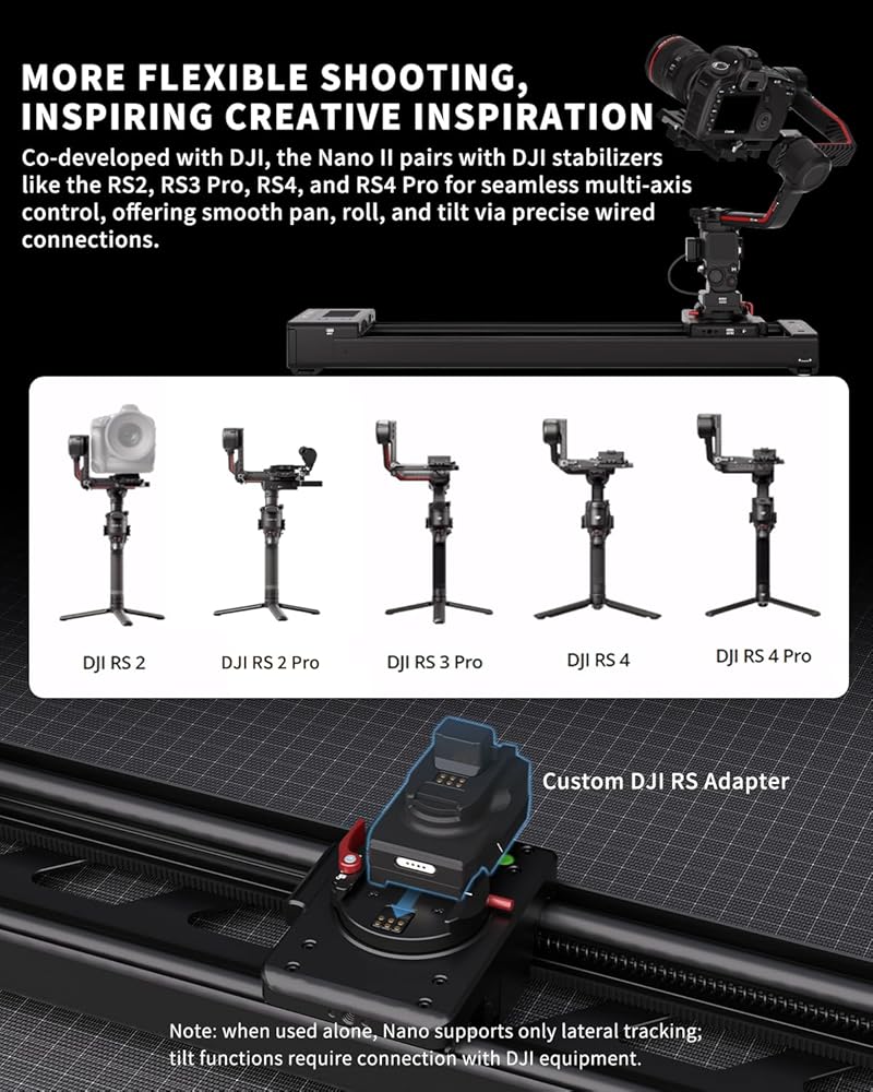 • 【تعاون IFOOTAGE Nano 2in مع DJI】تم تطوير Nano II بالتعاون مع DJI، ويقترن بمثبتات DJI مثل RS2، وRS2 Pro، وRS3 Pro، وRS4، وRS4 Pro للتحكم السلس متعدد المحاور، مما يوفر مقلاة ناعمة، ولف، والإمالة عبر اتصالات سلكية دقيقة.