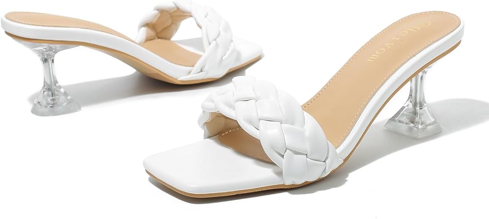 كعب مريح: كعب ستيليتو 3.54 سم، صنادل مربعة عند الأصابع جزء علوي من مادة TPU، ونعل مطاطي، ومقدمة مربعة وكعب شفاف، تصميم علوي مجدول مثير يجعلك أكثر سحرًا، ستضيف صنادلنا الكلاسيكية بالتأكيد إلى خزانة ملابس كل امرأة عصرية وتجلب لك الارتفاع الصحيح. ارتداؤه سيظهر أناقة وسحر المرأة بشكل كامل