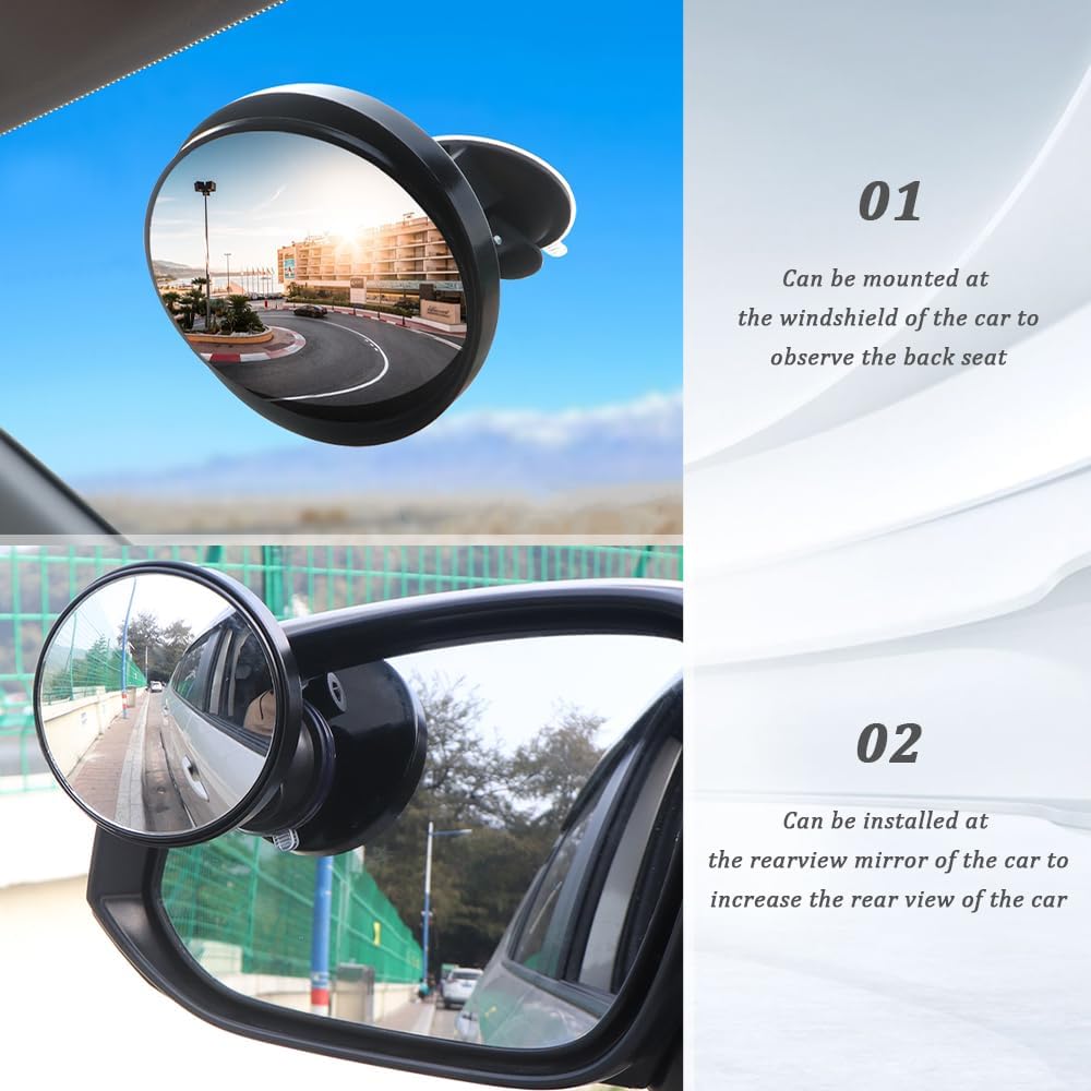 Function: The 360° free rotation adjustable angle not only allows you to observe the rear passengers, but also serves as a mirror for the front passengers. It's also possible to assist in observing the road.