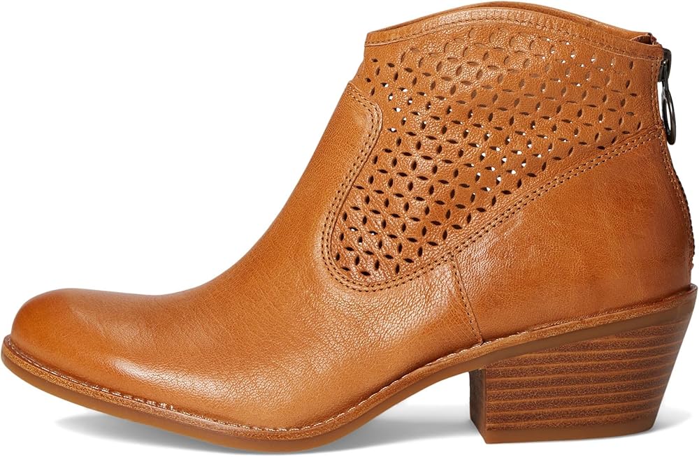 laser cut western-influenced fashion bootie, insize zip, flexible construction