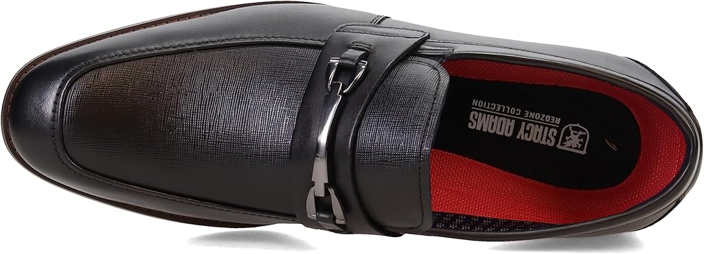 The Stacy Adams Kaylor Moc Toe Bit Slip On features a stylish upper and stacked heel. Highlighted by a stylish metal bit, it also has the comfort of breathable linings and our RedZone cushioned footbed. This slip on style is versatile enough for work, night out, or special event.