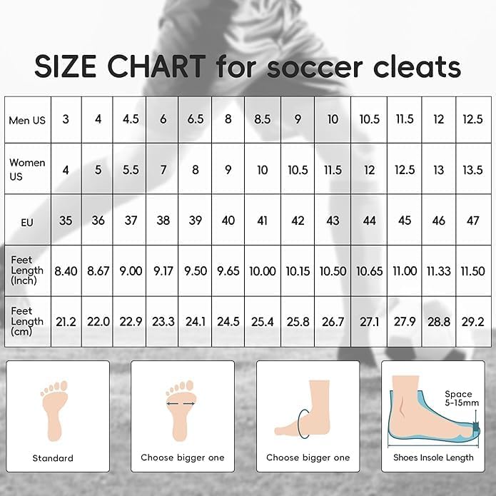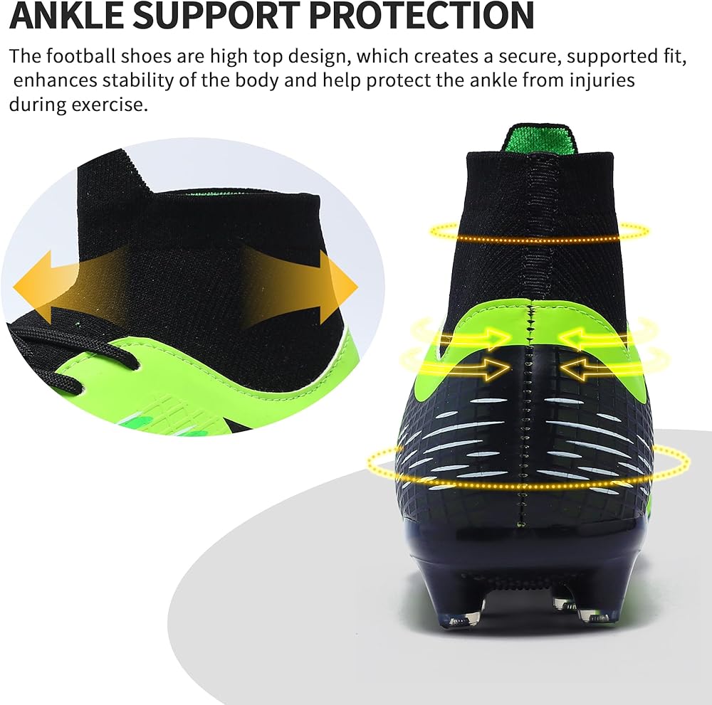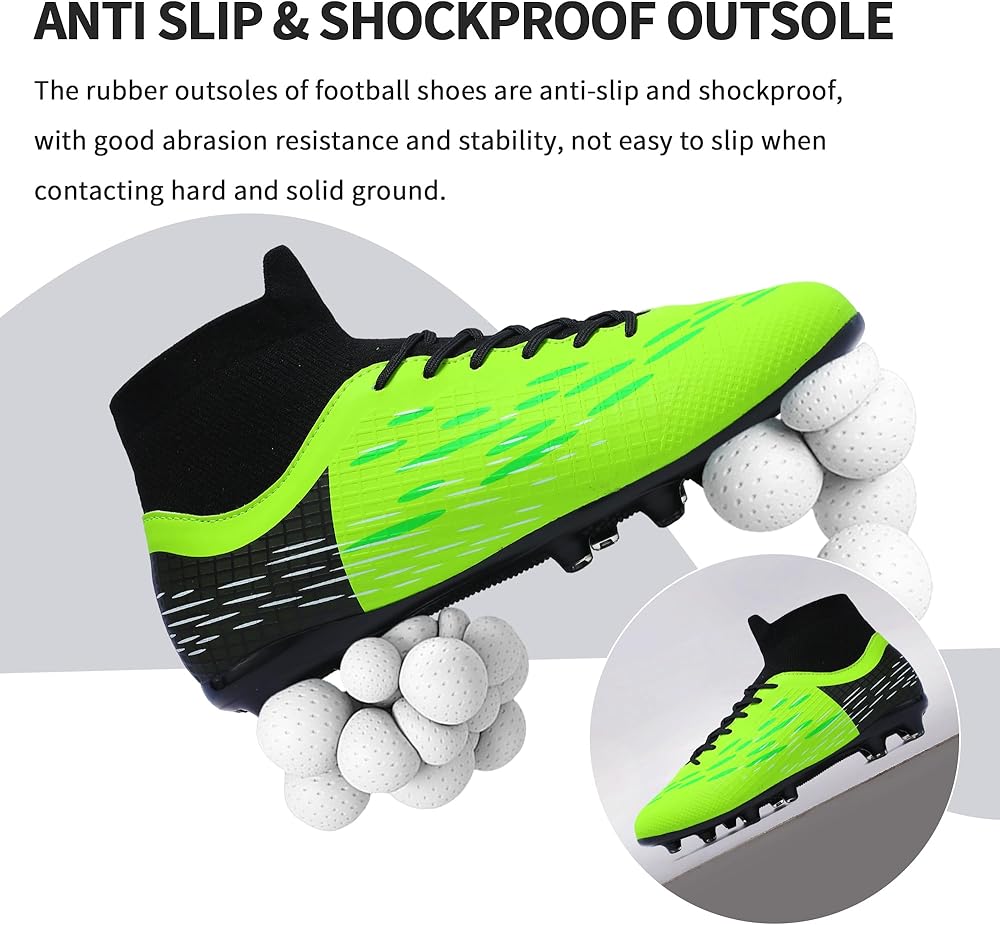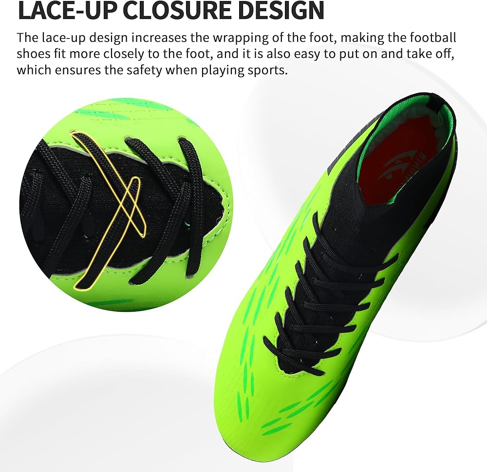 【قبضة قوية للعب كرة القدم】أحذية كرة القدم خفيفة الوزن وناعمة ومريحة، وحماية معززة، ومناسبة للرياضات عالية الكثافة. تم تصميم المسامير النعلية لأحذية كرة القدم بشكل جيد، وقبضة قوية، وغير قابلة للانزلاق وأكثر مقاومة للاهتراء، والاستخدام العالي أثناء التدريب أو الألعاب.