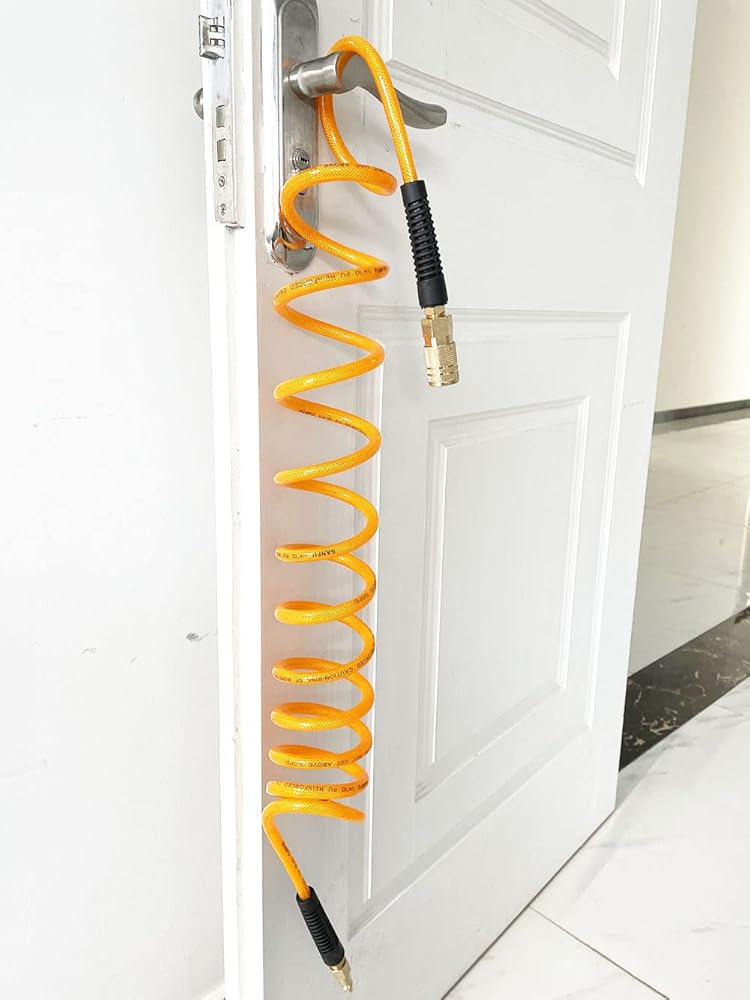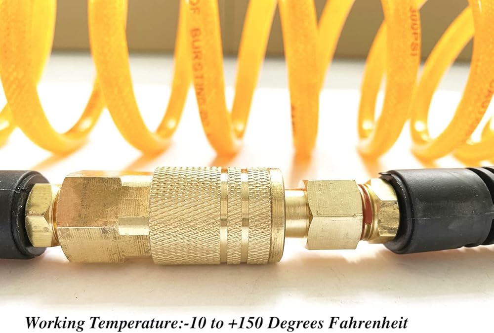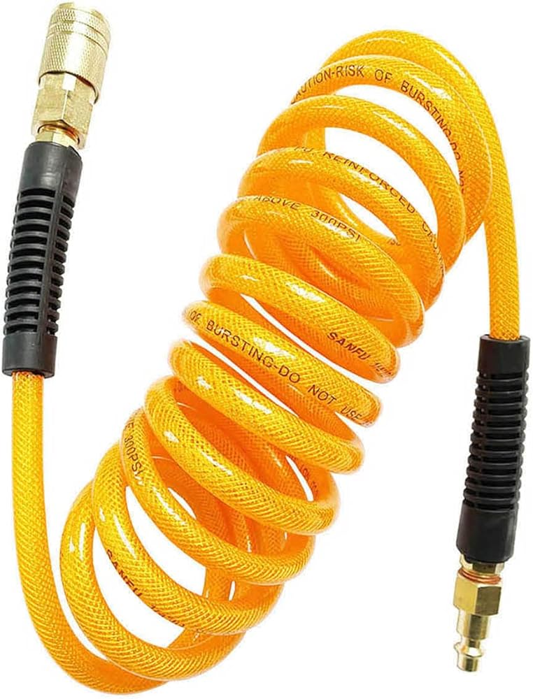خرطوم هواء مقوى من البولي يوريثان بطول 10 أقدام: مقاوم للتآكل والزيت والشحوم. أداء عملي خفيف الوزن. نطاق درجة الحرارة هو -10 إلى +150 درجة فهرنهايت.