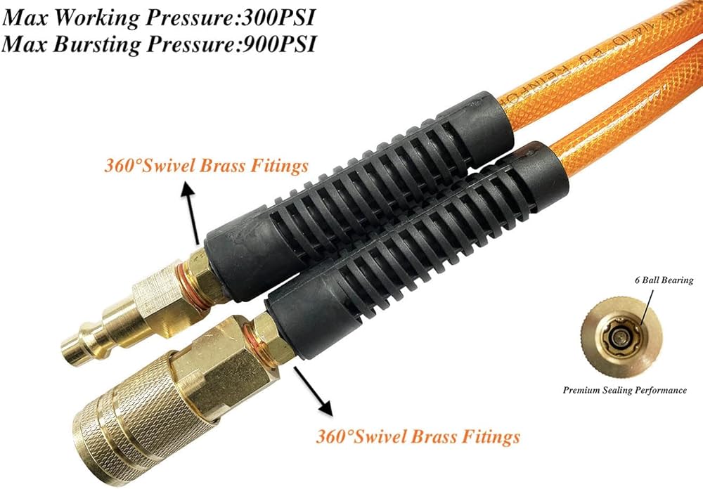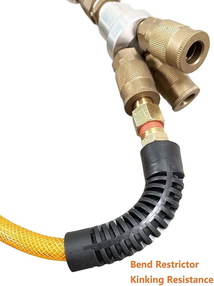 【الأداء】: خرطوم الهواء المقوى بالبولي يوريثان SANFU بطول 10 أقدام قام بتثبيت وصلة وقابس النحاس الصناعي، تصميم دوار خاص في كلا الطرفين. يعمل مقيد الانحناء على تقليل الالتواء وإطالة عمر الخرطوم.