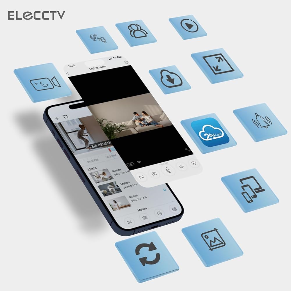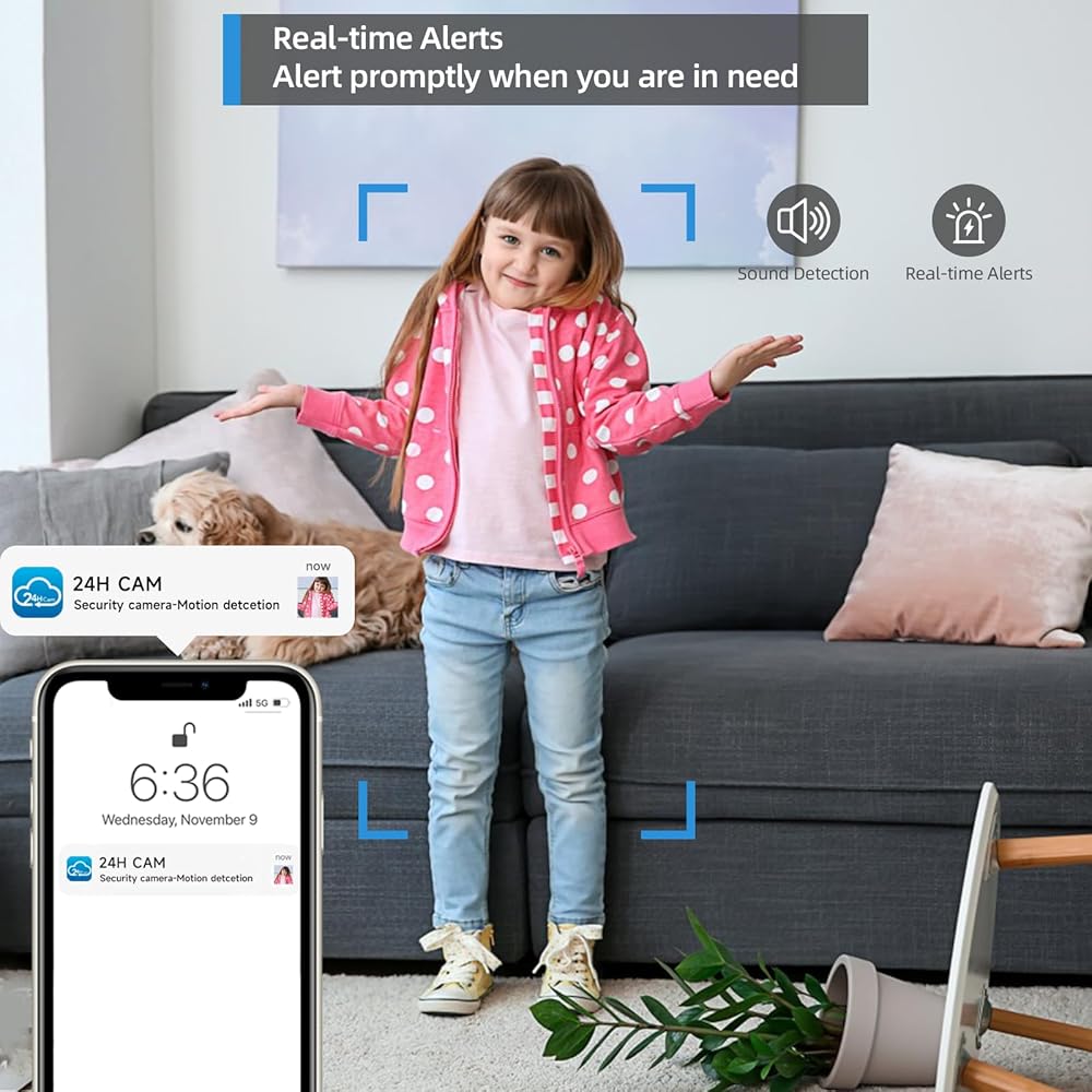 • [اتصال ثنائي الاتجاه في الوقت الحقيقي] كاميرا أمان واي فاي لاسلكية داخلية مع ميزة الصوت ثنائية الاتجاه، يمكنك التفاعل مع عائلتك أو أطفالك أو حيواناتك الأليفة من أي مكان في العالم. يعمل نظام كشف الحركة الذكي الداخلي بكاميرا الأمان اللاسلكية على تقليل الإنذارات الكاذبة بشكل كبير، مما يضمن عدم إعلامك إلا عندما يكون الأمر مهمًا حقًا. احصل على إشعارات فورية للحركة المكتشفة أو الأشخاص أو بكاء طفلك، مما يضمن أنك على علم دائمًا من خلال تطبيق 24H CAM البديهي الخاص بنا.