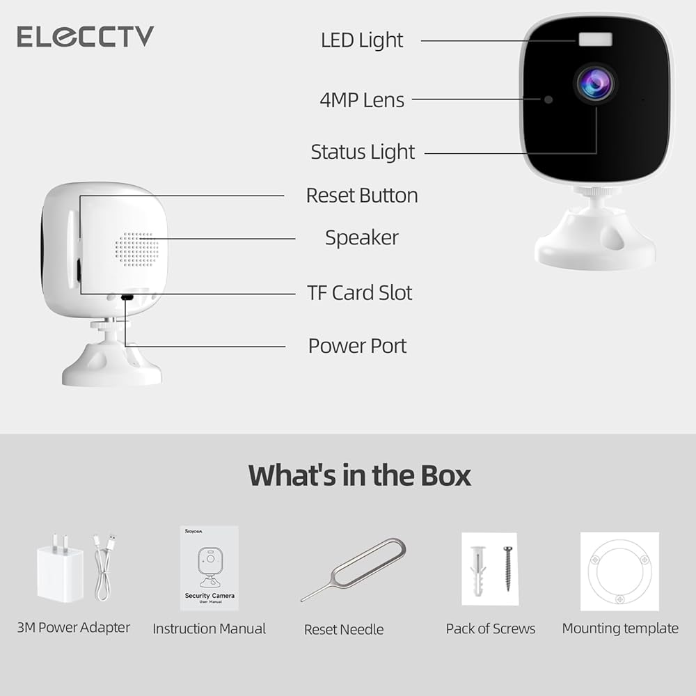 كاميرات 2K QHD 4MP لأمن المنزل واي فاي لاسلكي داخلي، مستشعر حركة، كاميرا تسجيل مستمر للغرفة، صوت ثنائي الاتجاه، مساعد Alexa&Google - T1 3PACK