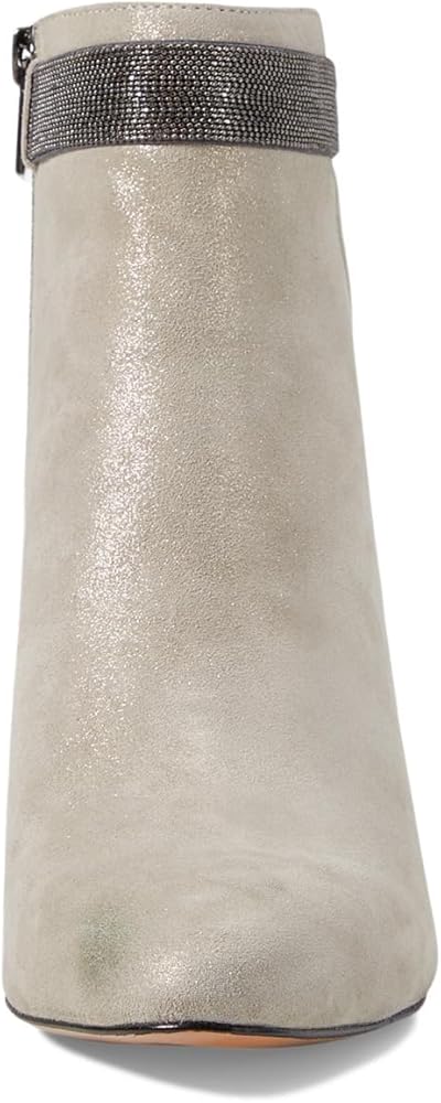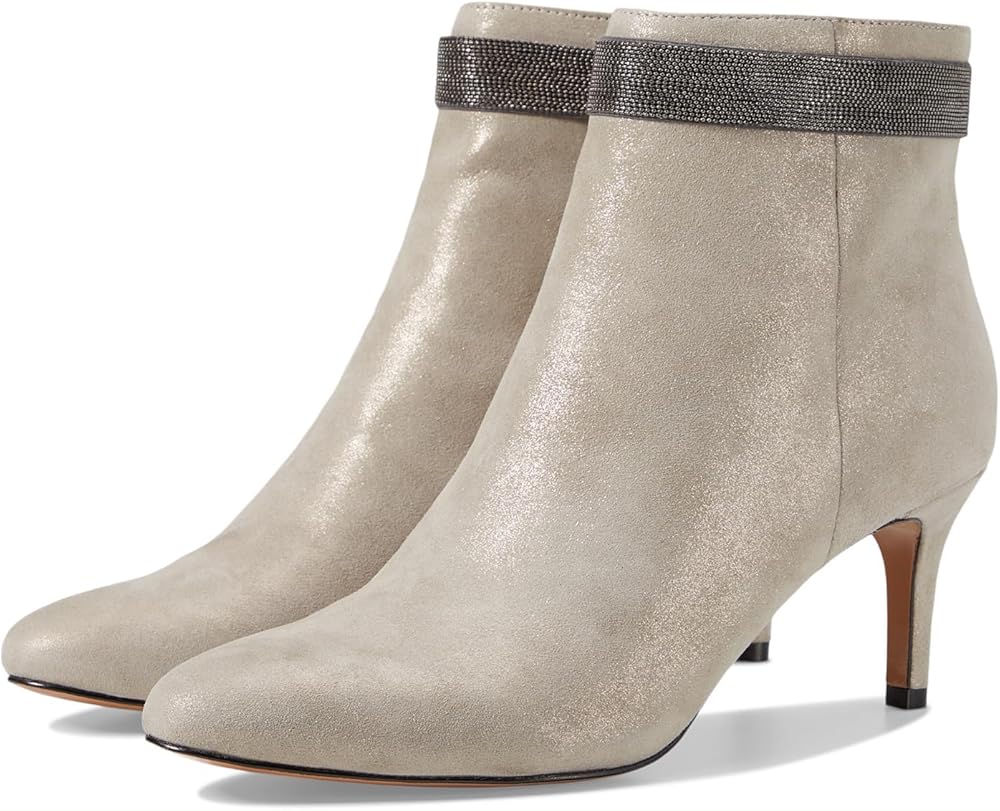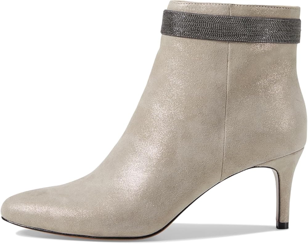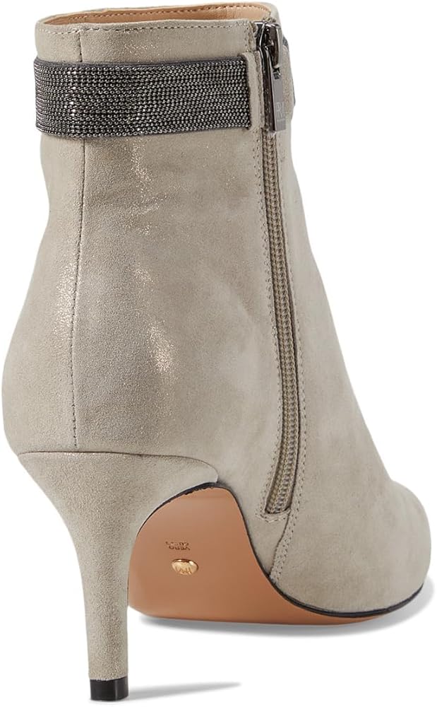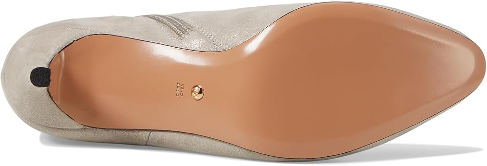 Add a touch of class to your look wearing the Pelle Moda Yori. Crafted from suede upper, this pair of boots features pointed toe design, chain ornament around the top of the bootie, stiletto heel, and zippered side closure for easy on and off. Fabric lining and synthetic footbed. PU foam midsole. Leather outsole.