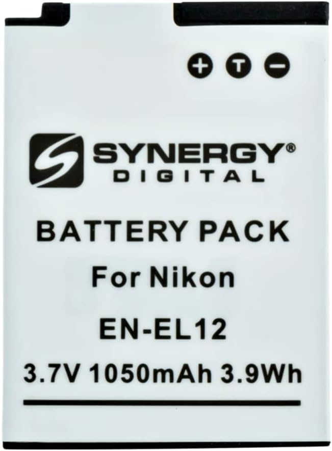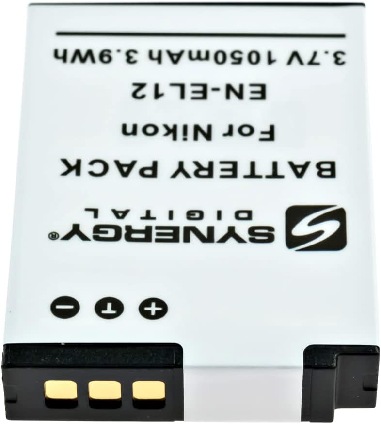 بطارية ليثيوم أيون SDENEL12 الرقمية من Synergy - سعة فائقة قابلة لإعادة الشحن (3.7 فولت 1050 مللي أمبير في الساعة) - بديلة لبطارية Nikon EN-EL12