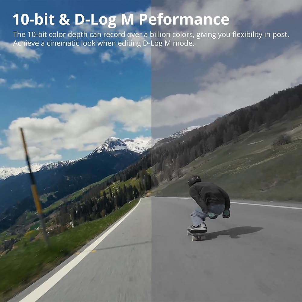 1/1.3″ Sensor & Low-Light Imaging 10-bit & D-Log M Color Performance Deep-Freeze Resistant & Long-Lasting Battery Life 4K/120fps & 155º Ultra-Wide FOV Magnetic Quick Release & Native Vertical Video 360° HorizonSteady Waterproof up to 18m Dual Full-Color Touchscreens Variety of optional accessories for swimming, diving, cycling, skiing and snowboarding