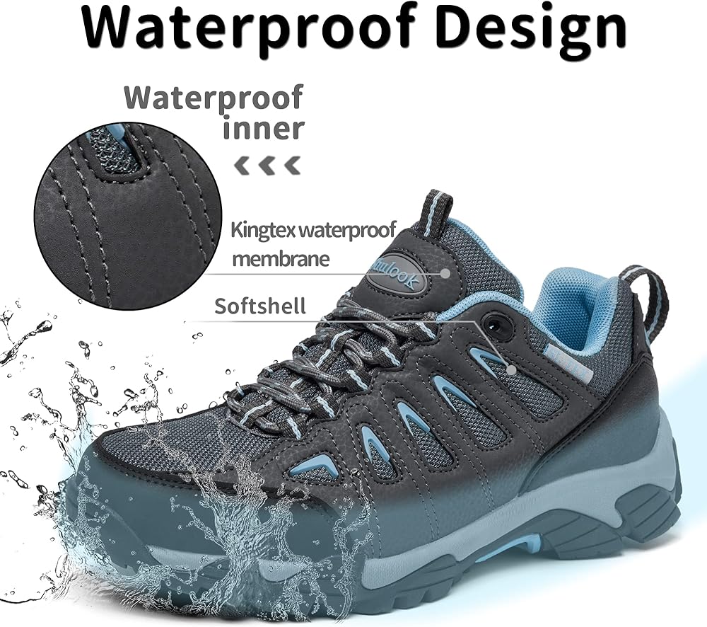 مقاومة للماء وخفيفة الوزن: أحذية المشي لمسافات طويلة للسيدات مصنوعة من الجلد الصناعي والشبكة. غشاء SL-TEX المقاوم للماء يمنع دخول الماء وتطاير بخار الماء. وزن خفيف للغاية: 0.87 رطل (مقاس 8)