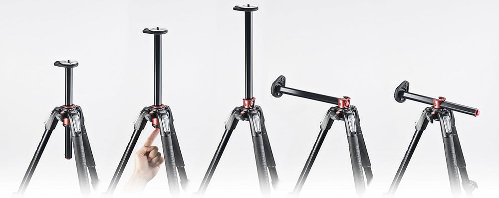 (90° Center Pole Mechanism for Multi-Angle Shooting) The 190XPRO Aluminum 4-stage tripod features a 90° center pole mechanism that allows you to instantly switch between vertical and horizontal positions. This allows you to easily take photos from different angles and create creative expressions