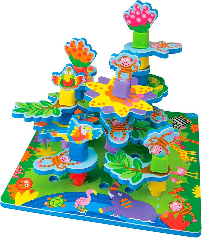 ALEX Toys Little Hands Peg and Layer Jungle is a fun way to have a safari adventure. Stack and layer pegs and soft foam shapes to create a jungle playset, then let the monkeys and parrots monkey around! Includes foam peg board (11.75in. square), 25 pegs and 20 soft foam shapes. Recommended for children 3 years of age and older.