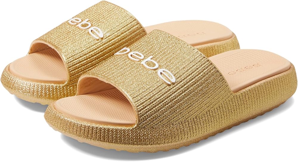 Layer up this pair to compliment your casual look wearing Bebe Portofino sandals. Synthetic upper and lining. Synthetic footbed. Slip-on style. Brand detailing on the strap. Open round toe design. Synthetic outsole. Imported.