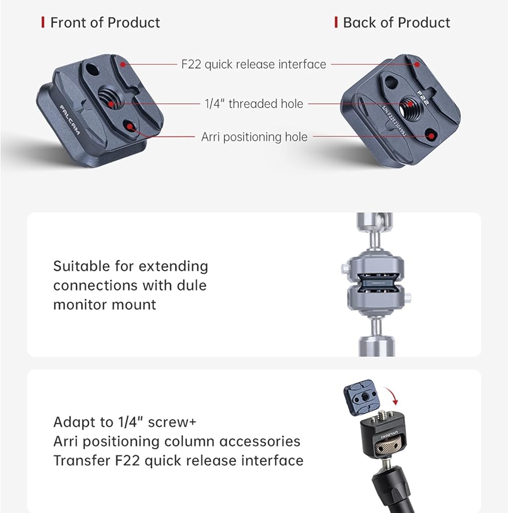 [مناسب لتمديد التوصيلات مع حامل شاشة Dule] يتكيف مع برغي 1/4 بوصة + ملحقات عمود تحديد المواقع Arri، واجهة نقل سريعة F22