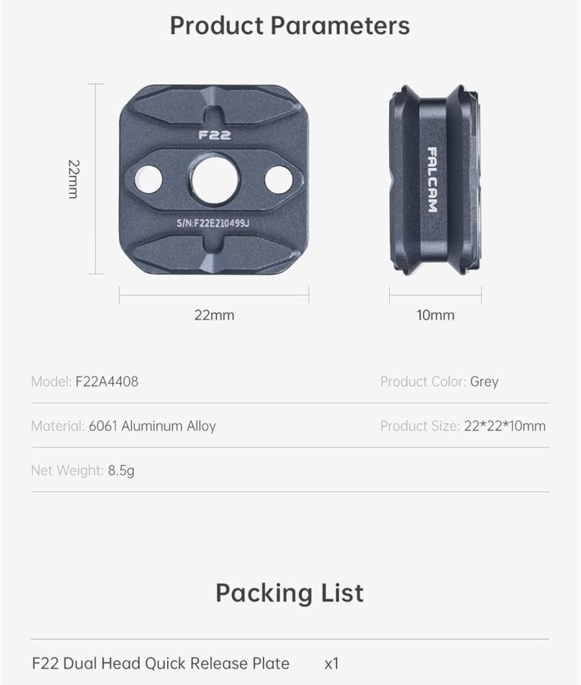 [تركيب وإزالة سريعة] مجهزة بواجهة فك سريع F22 مزدوجة الرأس، مناسبة لتوصيل الملحقات ذات الرأس المزدوج مع قاعدة فك سريع F22 لا حاجة إلى براغي، للتركيب والإزالة السريعة