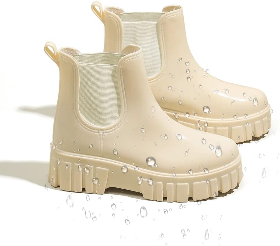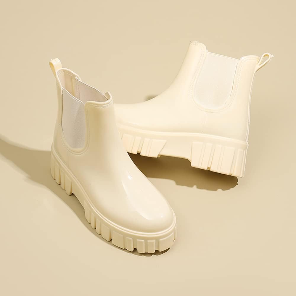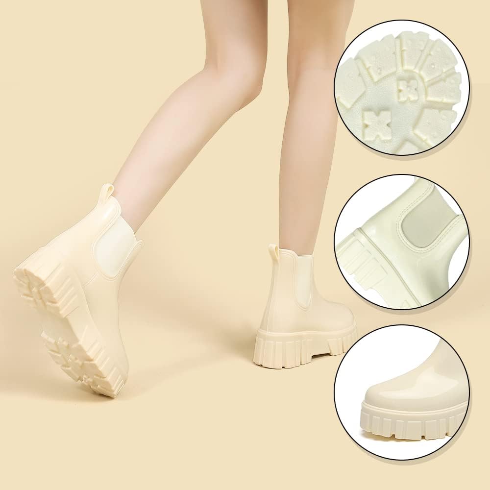 نعل من المطاط الصناعي 1. [تصميم عصري وكلاسيكي]: يتميز بمظهر دائري عند الأصابع وأحذية كاحل باللون الأسود الكلاسيكي والوردي الغزير والكاكي الدافئ والبيج، أحذية المطر Amoji Chelsea تتناسب بشكل جيد مع الفساتين والسراويل والجينز في أي طقس وفي أي مناسبة. إنه كلاسيكي لخزانة ملابس أي محبي الموضة.