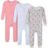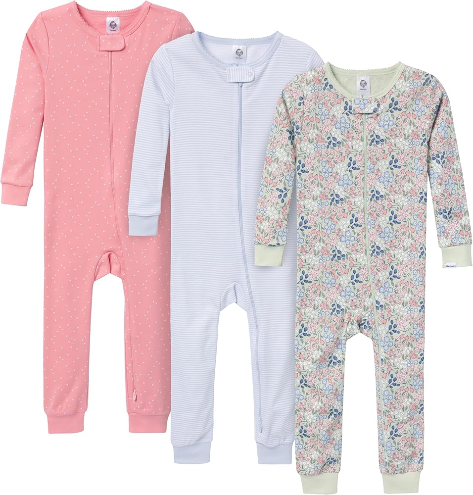 Designed to provide cozy comfort, our baby or toddler pajamas are the perfect fit for your little one after a full day of fun and play. Made primarily from soft cotton, they offer a breathable feel that keeps them comfortably warm throughout the night. The pajamas feature a convenient two-way zipper with a neckline guard for easy dressing and quick diaper changes, while spandex trim at the neckline and wrists ensures a flexible, secure fit. With a tight-fitting style for added safety, these pajamas are perfect for active little ones who love to play and explore, making bedtime as delightful as their daytime adventures. Each of the exciting patterns and designs in this 3-pack will be a hit all season long.