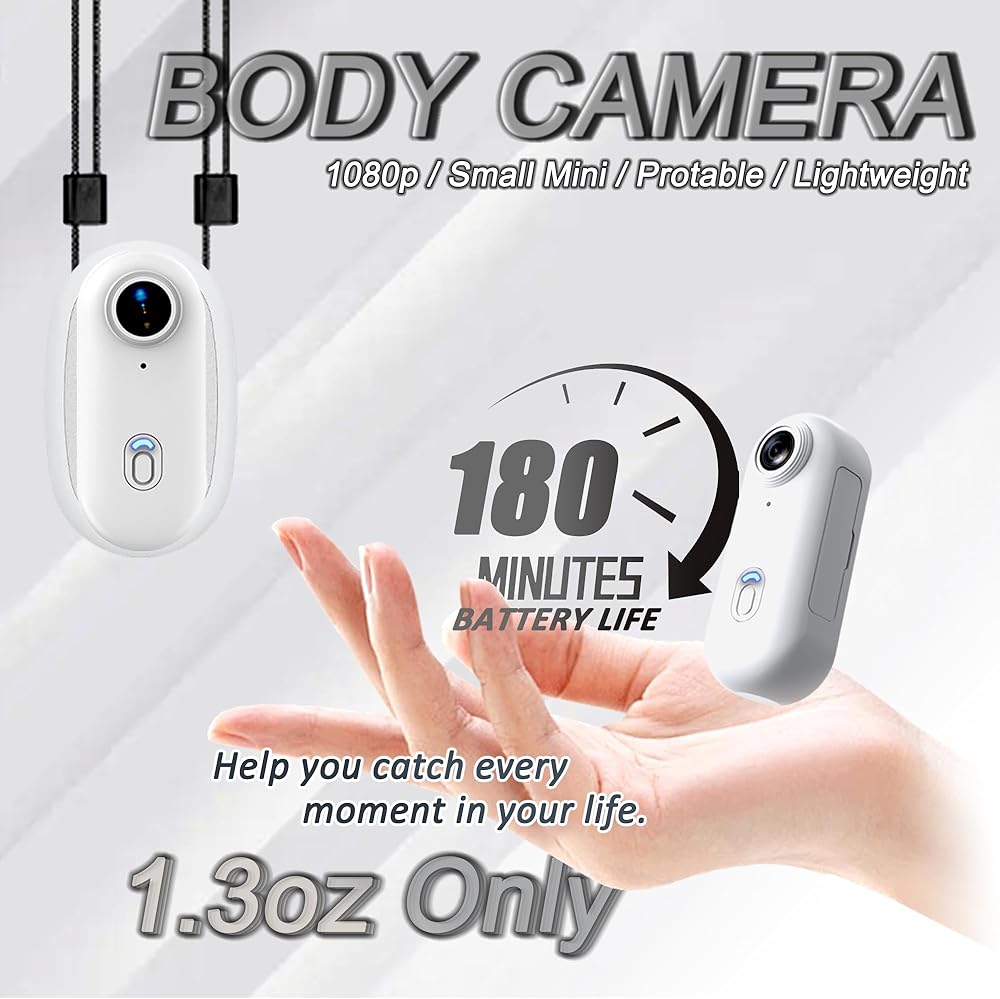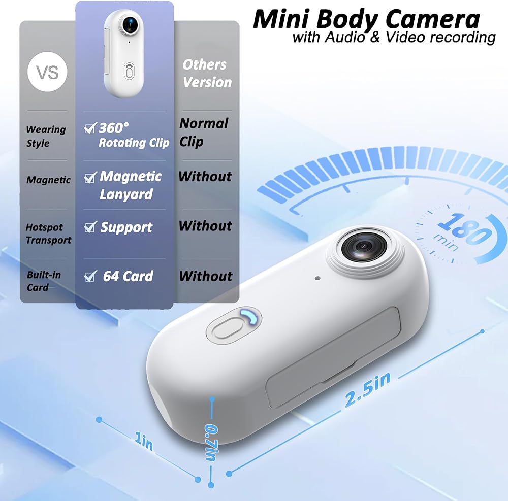 كاميرا أكشن صغيرة للجسم مع تسجيل صوتي وفيديو - كاميرا 1080 بكسل مدنية شخصية يمكن ارتداؤها صغيرة 64 جيجا - مسجل فيديو صغير الحجم محمول بدون استخدام اليدين - مسجل POV - حيوانات أليفة للسفر وعائلة أطفال