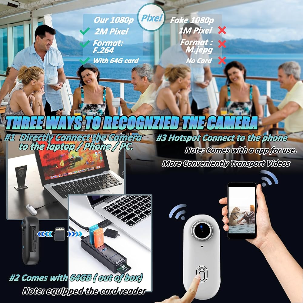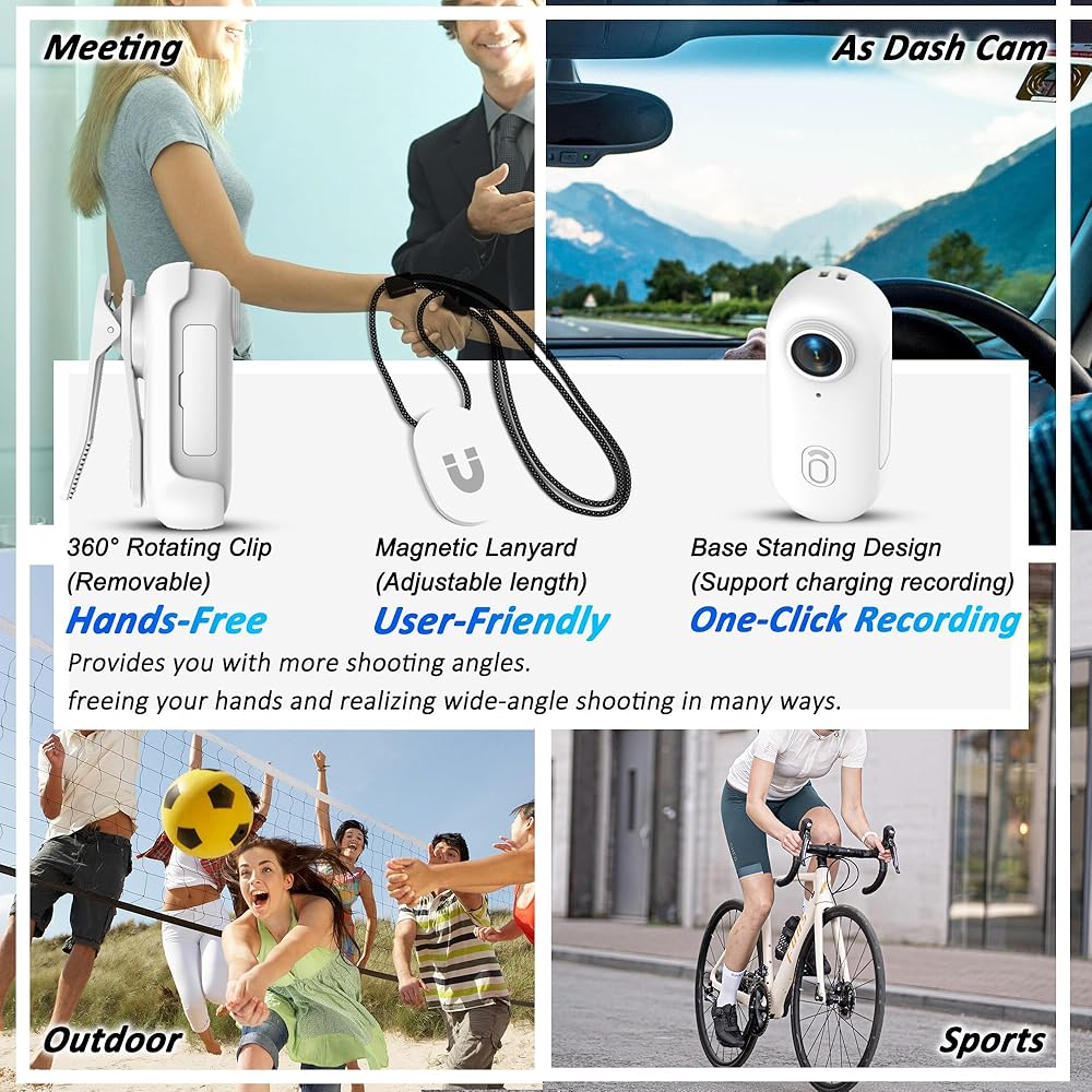 تعدد الاستخدامات في متناول يدك - تم تصميم كاميرا الإبهام لسهولة الحمل وسهولة الاستخدام. تكتمل الكاميرا بمشبك قابل للفصل يدور 360 درجة، وحبل مغناطيسي، ويمكن ربط الكاميرا بشكل آمن بملابسك أو حقائبك، وتوفر هذه الكاميرا راحة بدون استخدام اليدين، مما يسمح لك بتجربة زوايا ومنظورات التصوير المختلفة. تصميم مغناطيسي وحامل، مما يسهل وضعه على الأسطح المعدنية ومستقر، والتصوير على الأسطح المستوية.