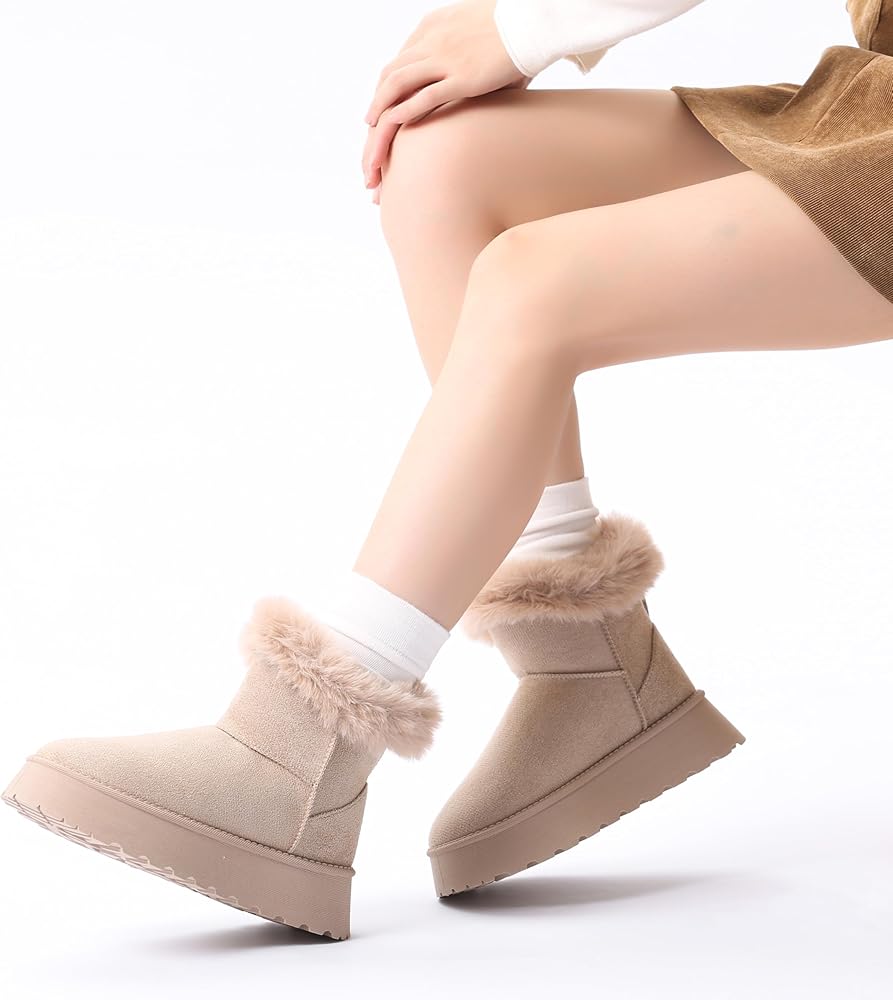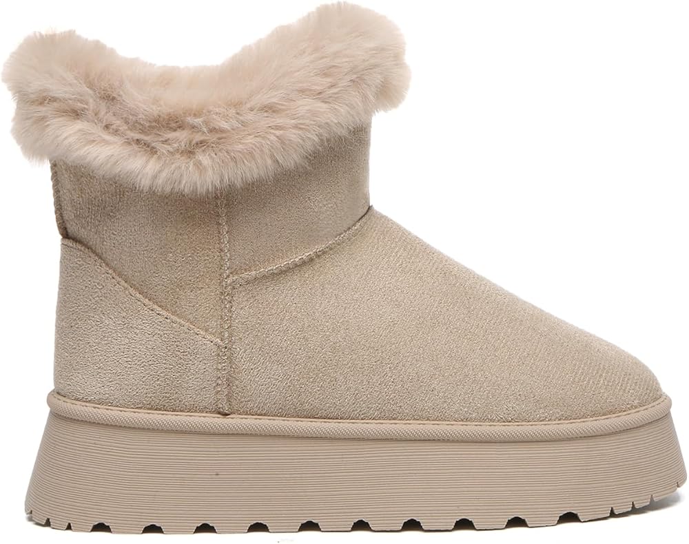 جلد سويدي مريح: حافظ على دفء قدميك وراحتهما مع أحذية الثلج النسائية المصنوعة من الجلد السويدي. الجزء العلوي من حذاء الشتاء هذا ناعم الملمس، مما يضمن الأناقة والراحة مع كل خطوة.