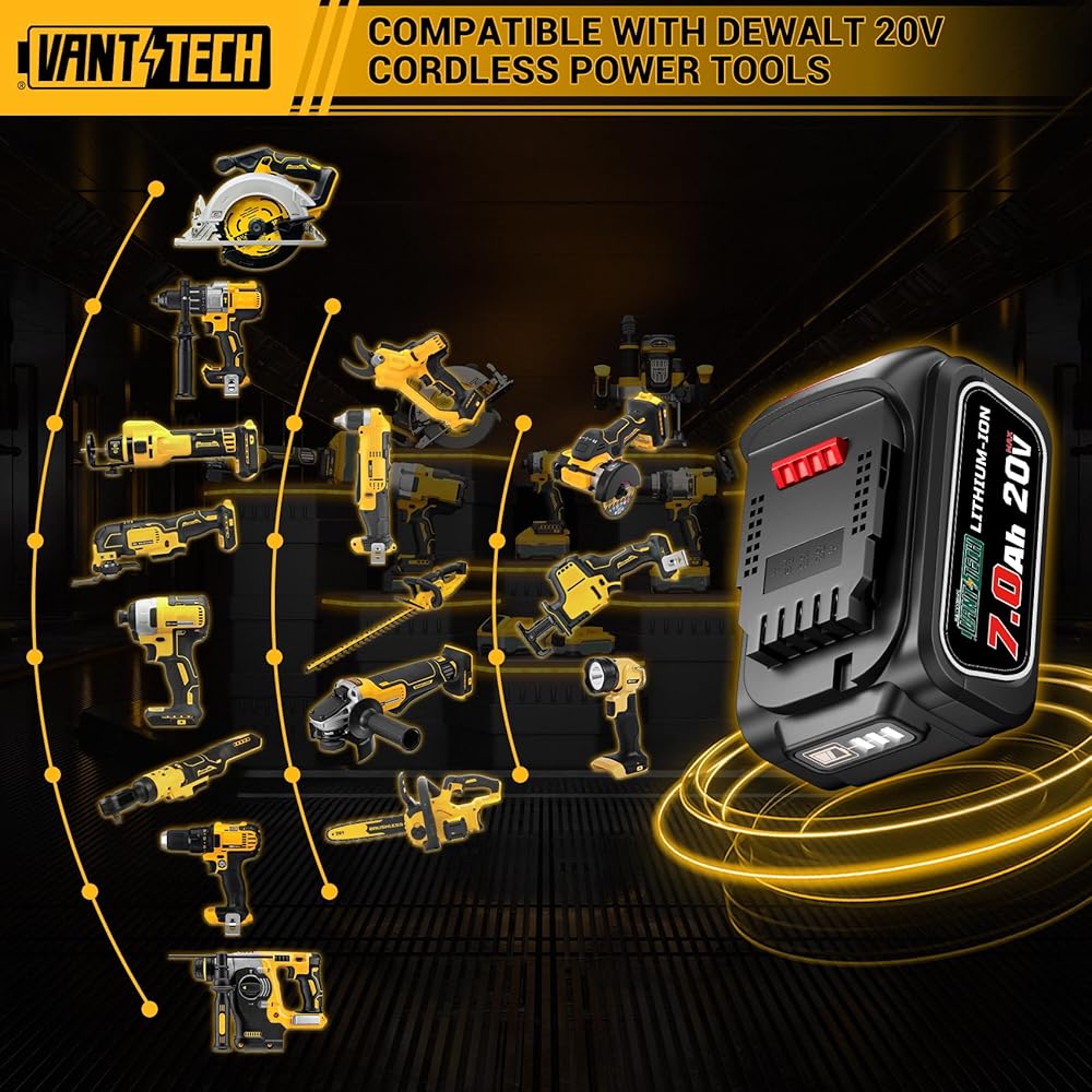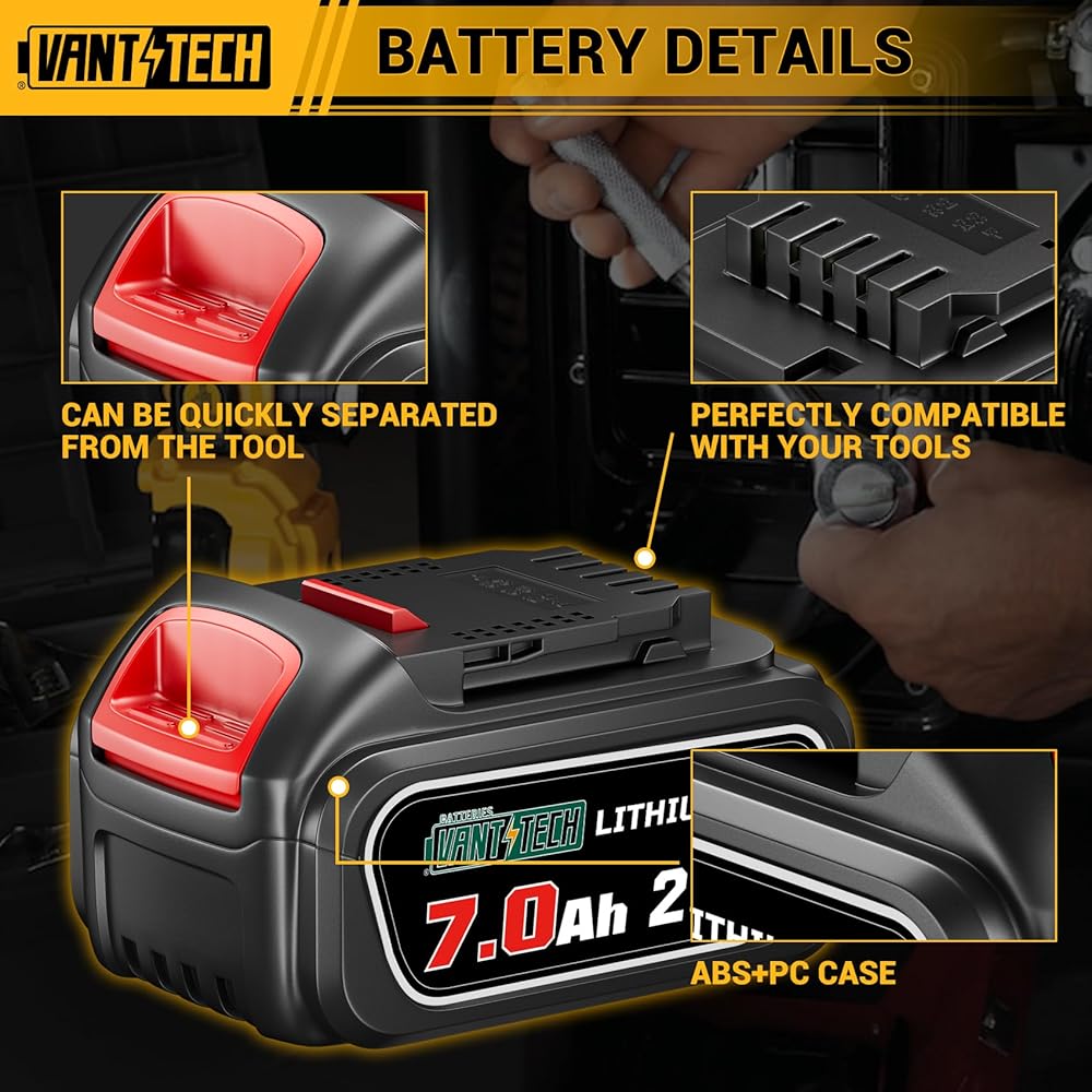 استبدال VANTTECH 7.0Ah لبطارية ليثيوم أيون ديوالت 20 فولت ماكس متوافقة مع بطاريات ديوالت باتريا DCB200 DCB201 DCB203 DCB204 DCB206 DCB180 DCB181 20 فولت 2 حزمة