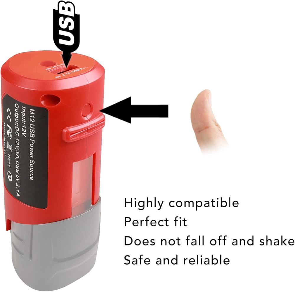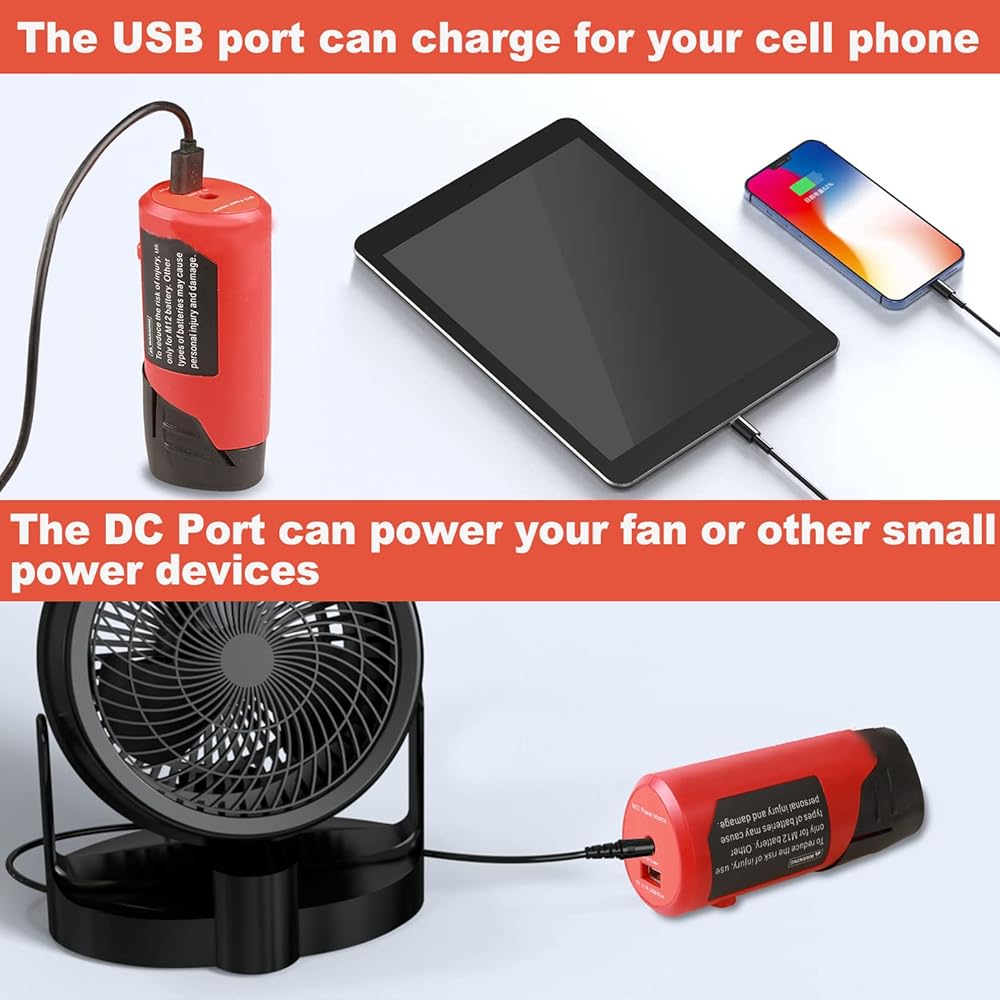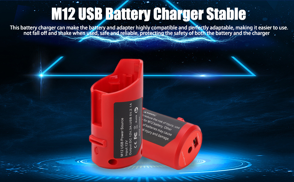 استخدام متعدد الوظائف: لا يمكن لمحول شحن البطارية هذا شحن سلسلة M12 فحسب، بل أيضًا أكثر ملاءمة للهواتف الخلوية الخارجية والأجهزة اللوحية ومراوح سطح المكتب والأجهزة الإلكترونية الأخرى المستخدمة كطاقة احتياطية.