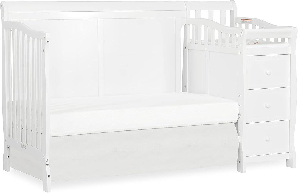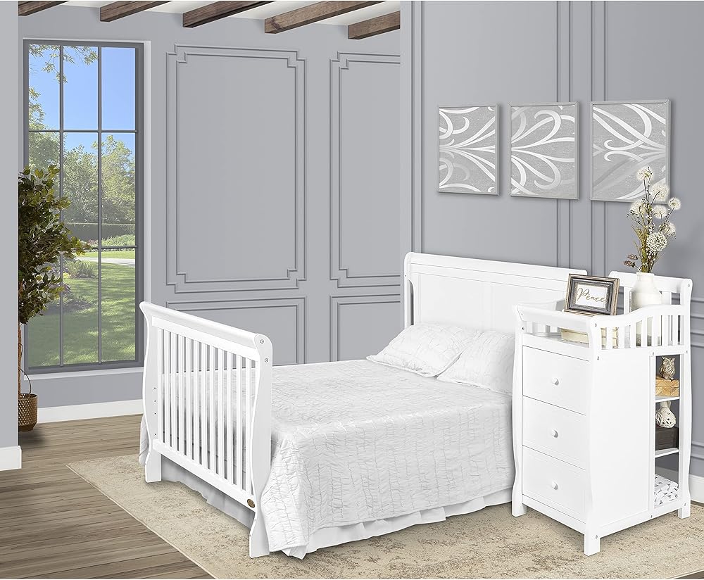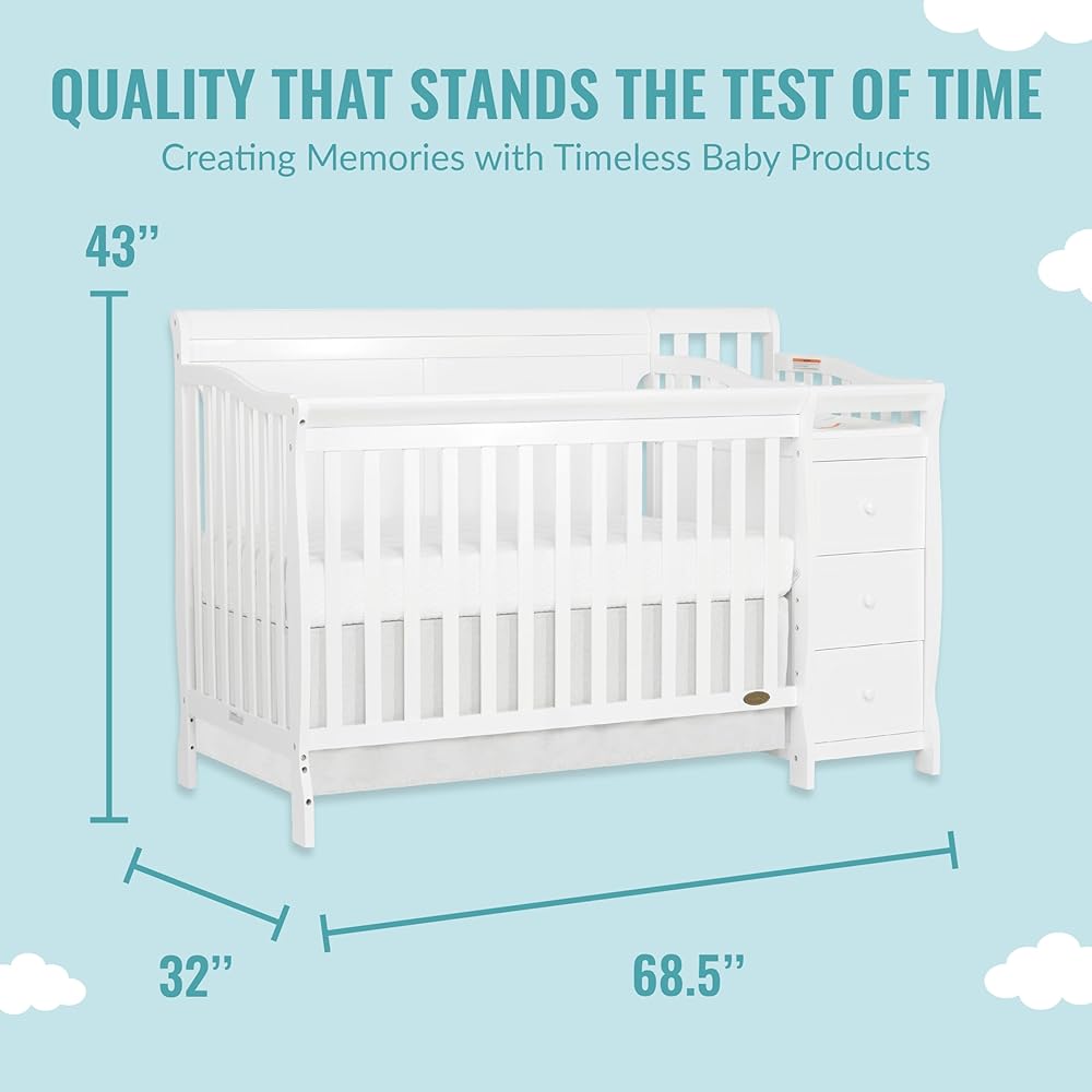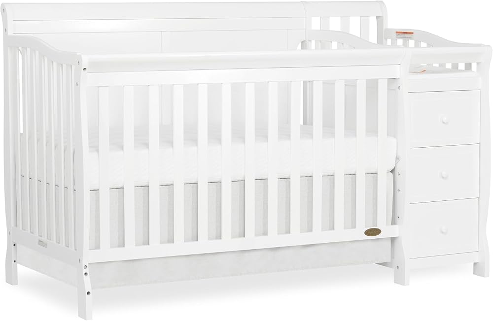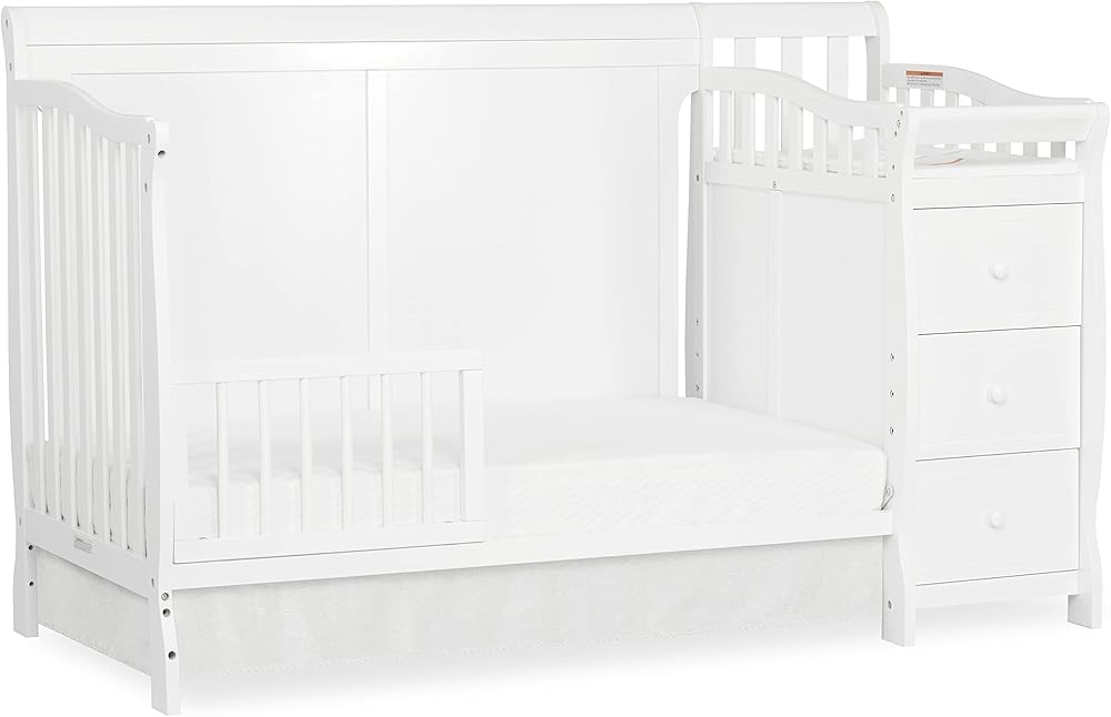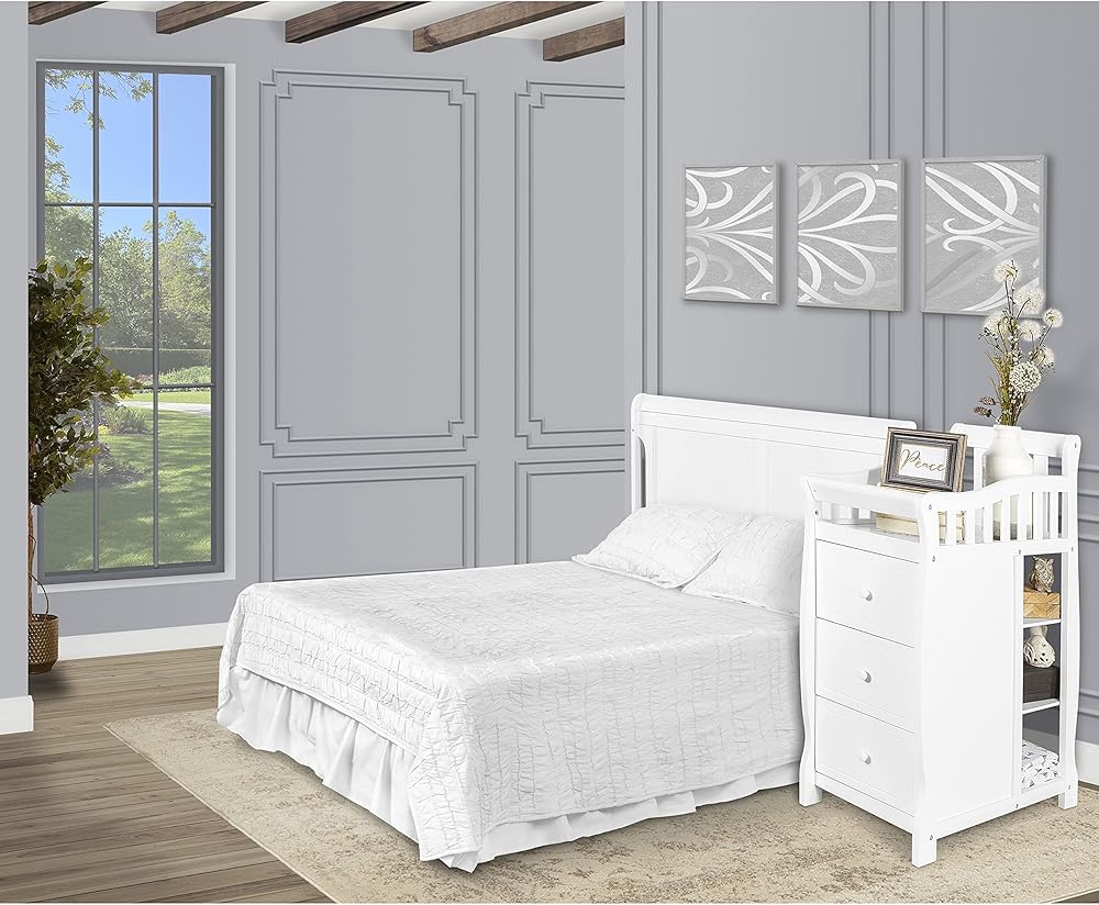 Rugged and built for the long-term, the grand Brody 5-in-1 Full Panel Convertible Crib & Changer is a must-have for any new parent. Welcome your bundle of joy into the warm and sturdy embrace of this convertible crib as it easily transitions to a daybed, toddler bed, and full-size bed with optional bedrails (bed rails and conversion kit sold separately).NOTE: The changing table can be used as a standalone piece only in full-size bed conversion mode. What's more, the Brody is designed for convenience with a detachable changing table that comes with a 1-inch-thick changing pad, an easy-release buckle, and 3 spacious drawers to hold all of your little one's essentials. As with all Dream On Me cribs, this compact yet powerful crib & changer is JPMA certified and meets or exceeds all ASTM & CPSC standards. With an eye-catching Full Panel design, it comes in 4 modern finishes – Black, Espresso, Steel Grey, & White.