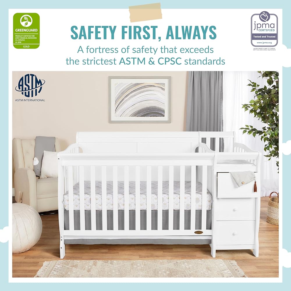 SAFE AND STURDY: The Brody Full Panel Convertible Crib is JPMA certified, meets/exceeds all ASTM & CPSC standards, and comes with stationary (non-drop side) rails.
