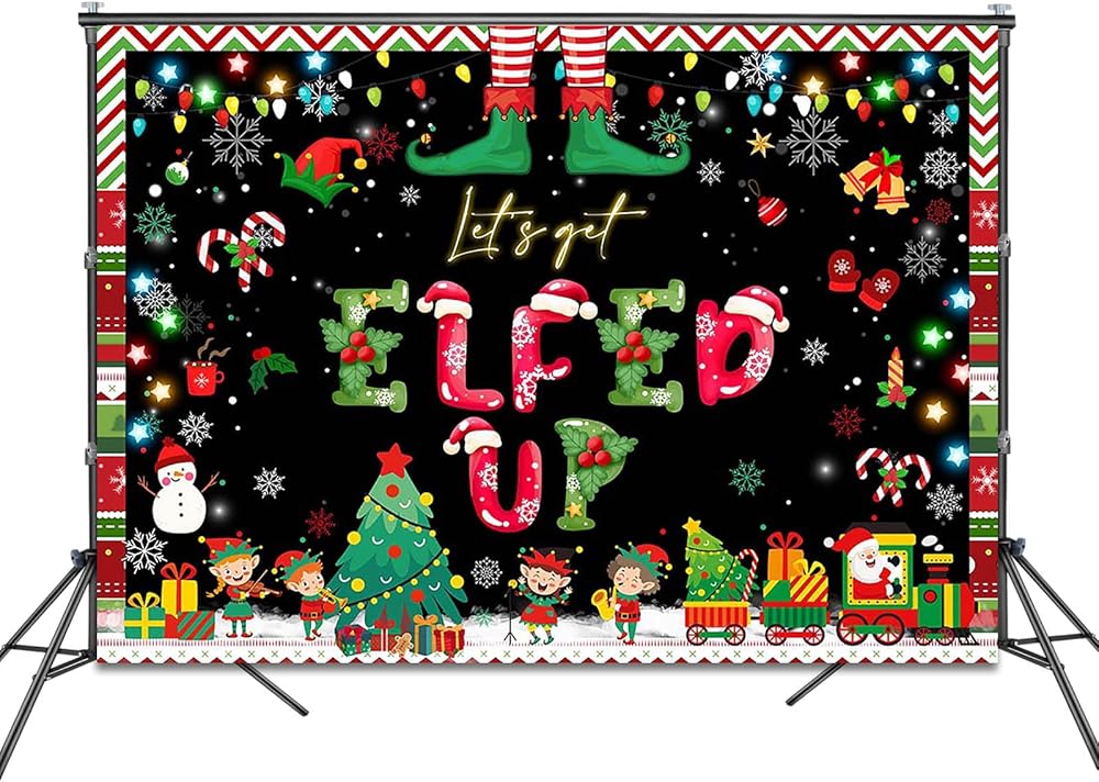 • 【MATERIAL】This let's get elfed up backdrop is made of vinyl fabric, which is sturdy, seamless, lightweight, non-reflective and harmless to both adults and children.