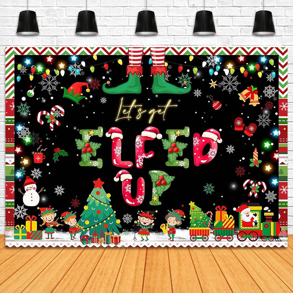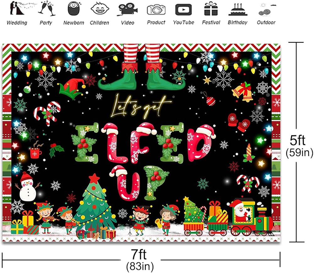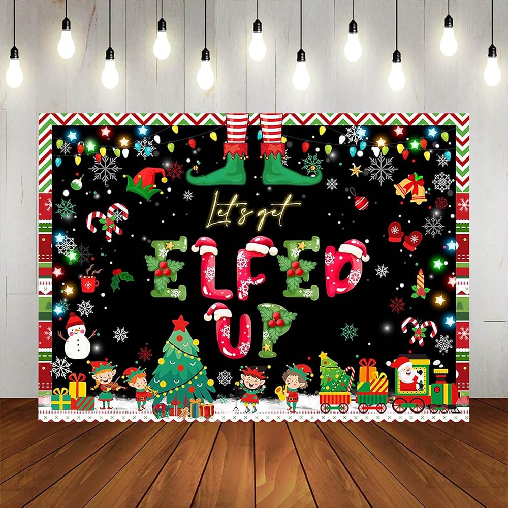 دعونا نحصل على خلفية Elfed Up مقاس 7 × 5 أقدام لخلفية عيد الميلاد Elfed ديكورات الحفلات للأطفال في فصل الشتاء ورقائق الثلج وعيد الميلاد وحفلات أعياد الميلاد وحفلات الصور كشك الدعائم