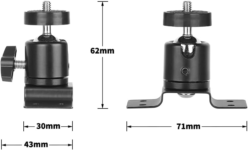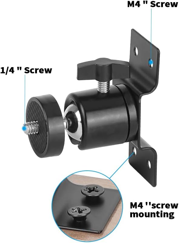 This SZRIG Wall Mount with 1/4"-20 Mini Ball Head is made of aluminum alloy, have 1/4"-20 thread to mount camera LED light or Surveillance System.