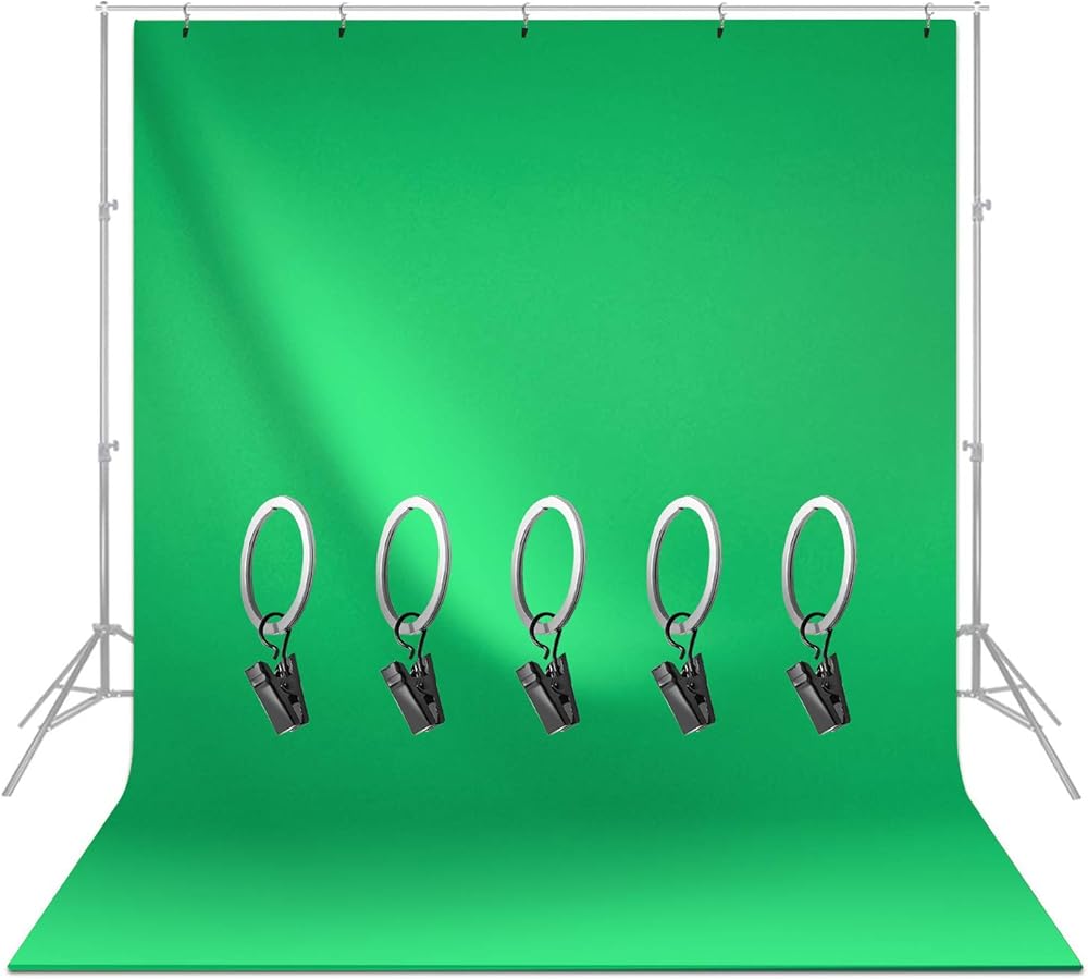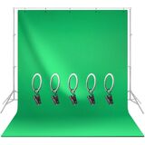 - ✅ المحتويات: 6 أقدام (عرض) × 9 أقدام (ارتفاع) شاشة خضراء كروماكي الحقيقية / 5 قطع من مشابك حامل الشاشة المعدنية