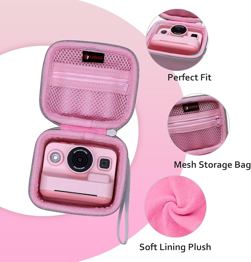 ملاءمة مثالية: حافظة كاميرا الأطفال متوافقة مع ESOXOFFORE وMINIBEAR وDylanto وWEEFUN والمزيد من الكاميرا الفورية. حقيبة تخزين الكاميرا ذات الطباعة الفورية الحجم الخارجي: 5.0 × 4.2 × 3.4 بوصة