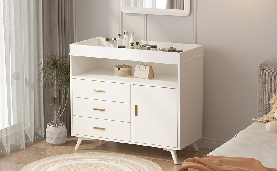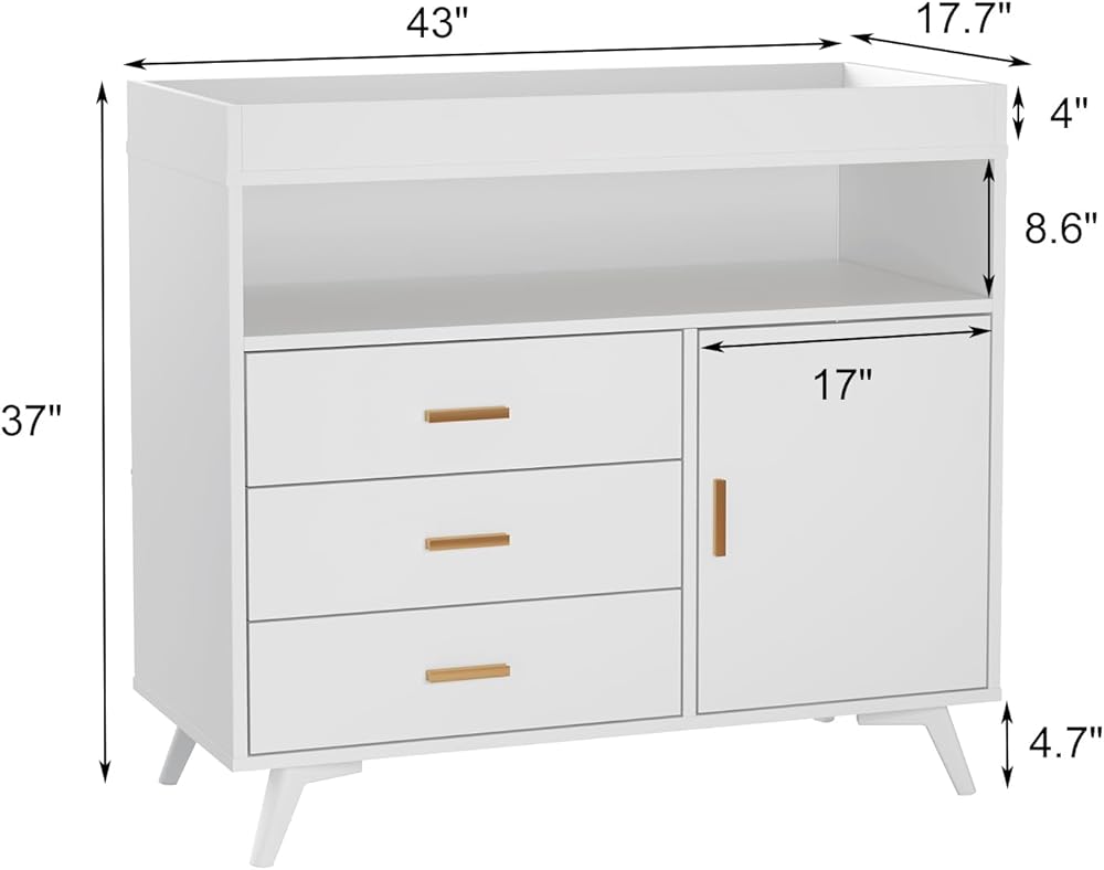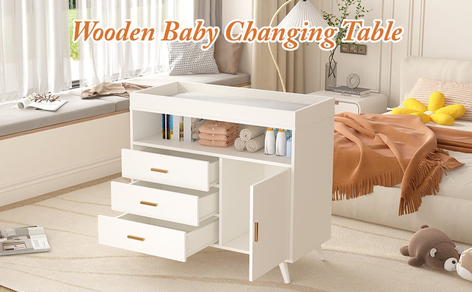 👶طاولة تغيير متعددة الوظائف: تحتوي محطة تغيير حفاضات الأطفال هذه على 3 أدراج وخزانة واحدة، والتي يمكن استخدامها كمحطة تغيير حفاضات ورف تخزين. يمكنك وضع طفلك على الطاولة لتغيير الحفاضات واللمس. يمكنك وضع الحفاضات ومستلزمات الأطفال والملابس المتسخة وما إلى ذلك في الخزانة.
