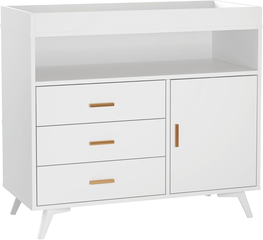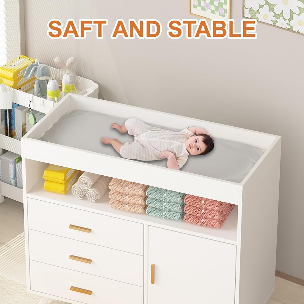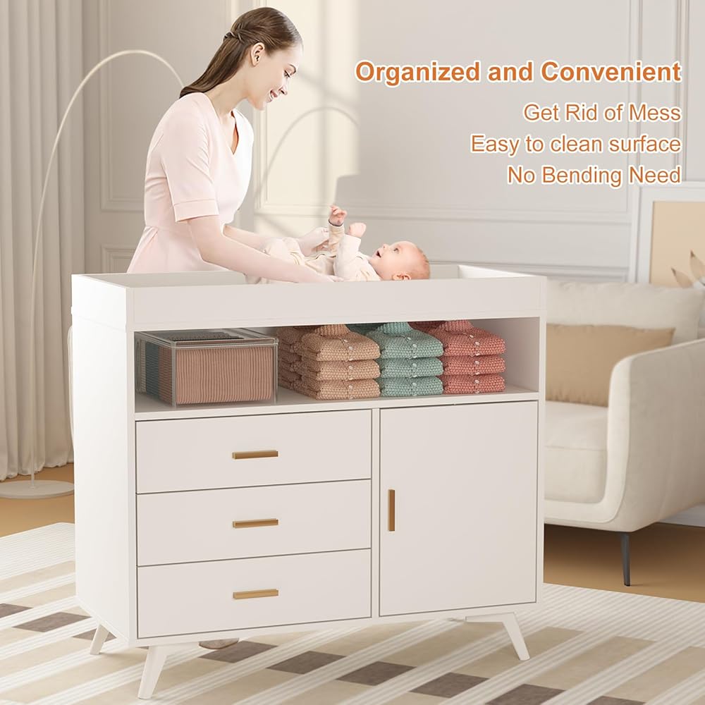 خزانة ملابس أطفال مع طاولة تغيير حفاضات، طاولات تغيير حفاضات مع 3 أدراج وأرفف، خزانة أطفال مع سطح طاولة تغيير، خزانة ملابس لغرفة الأطفال، محطة تغيير حفاضات خشبية