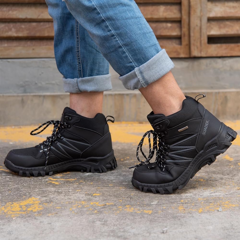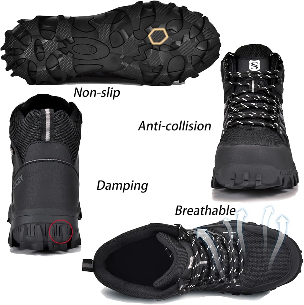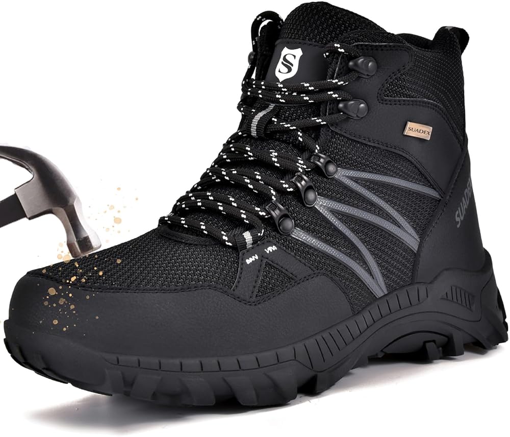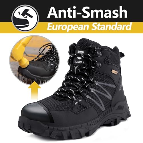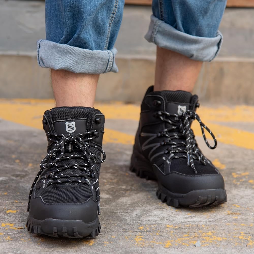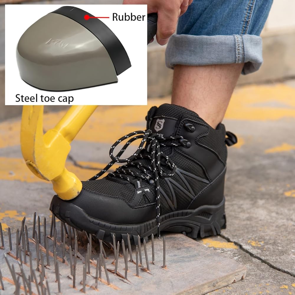 【غير قابلة للتدمير】توفر أحذية الأمان للرجال ذات مقدمة فولاذية أوروبية قياسية مقاومة للصدمات تصل إلى 200J. متوافق مع معايير ASTM، يمكنه حماية أصابع قدميك بشكل أفضل.