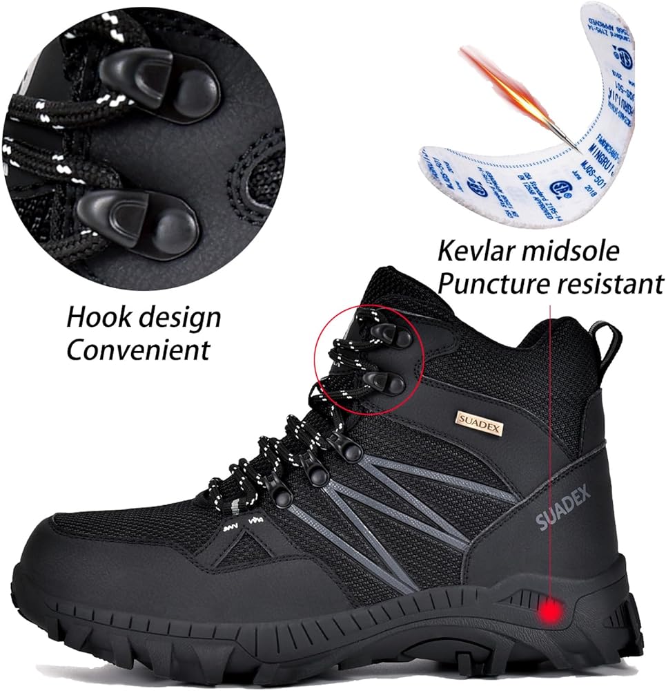 【مقاومة للثقب】تم تصميم أحذية أصابع القدم الفولاذية مع نعل أوسط خفيف الوزن من كيفلار لحماية قدميك من الثقب بواسطة أشياء حادة مثل الأظافر والقضبان الفولاذية وما إلى ذلك.