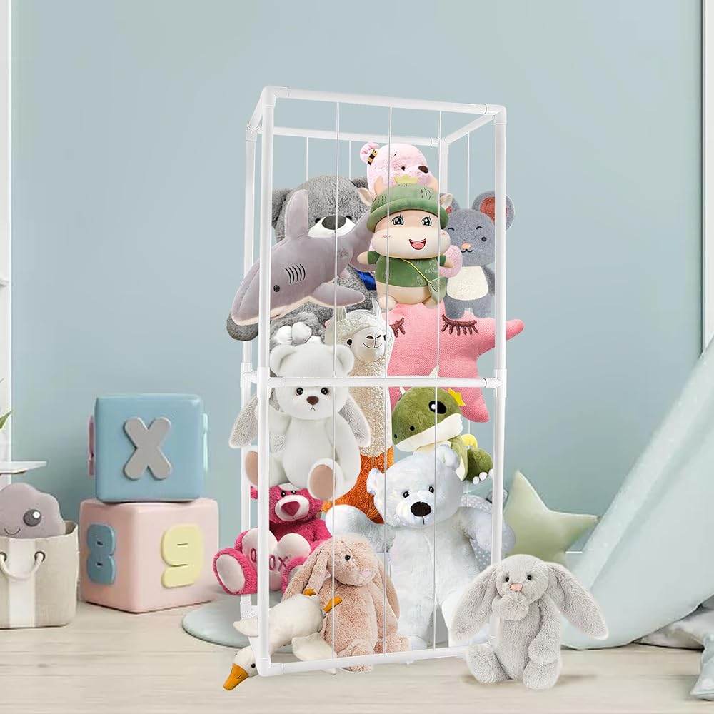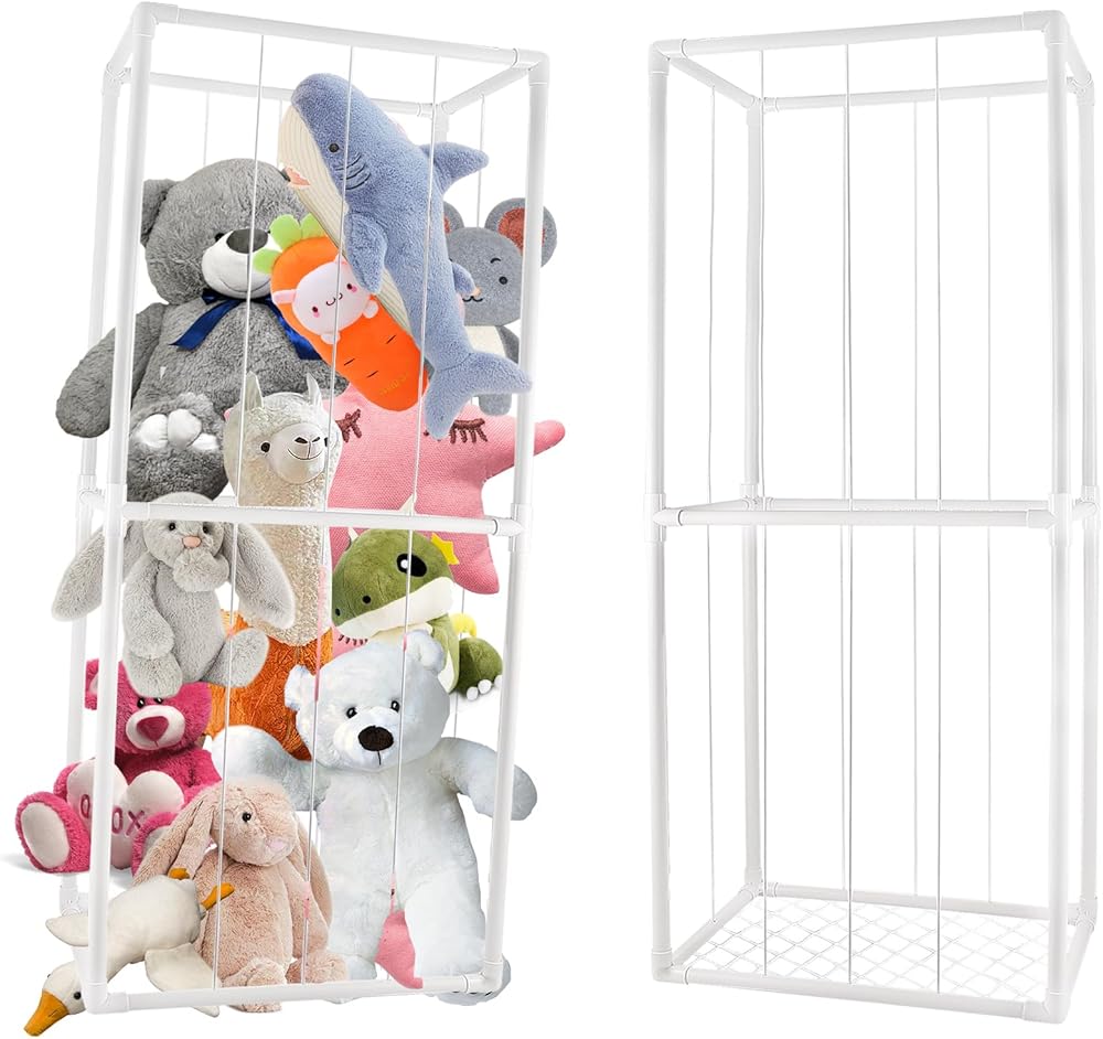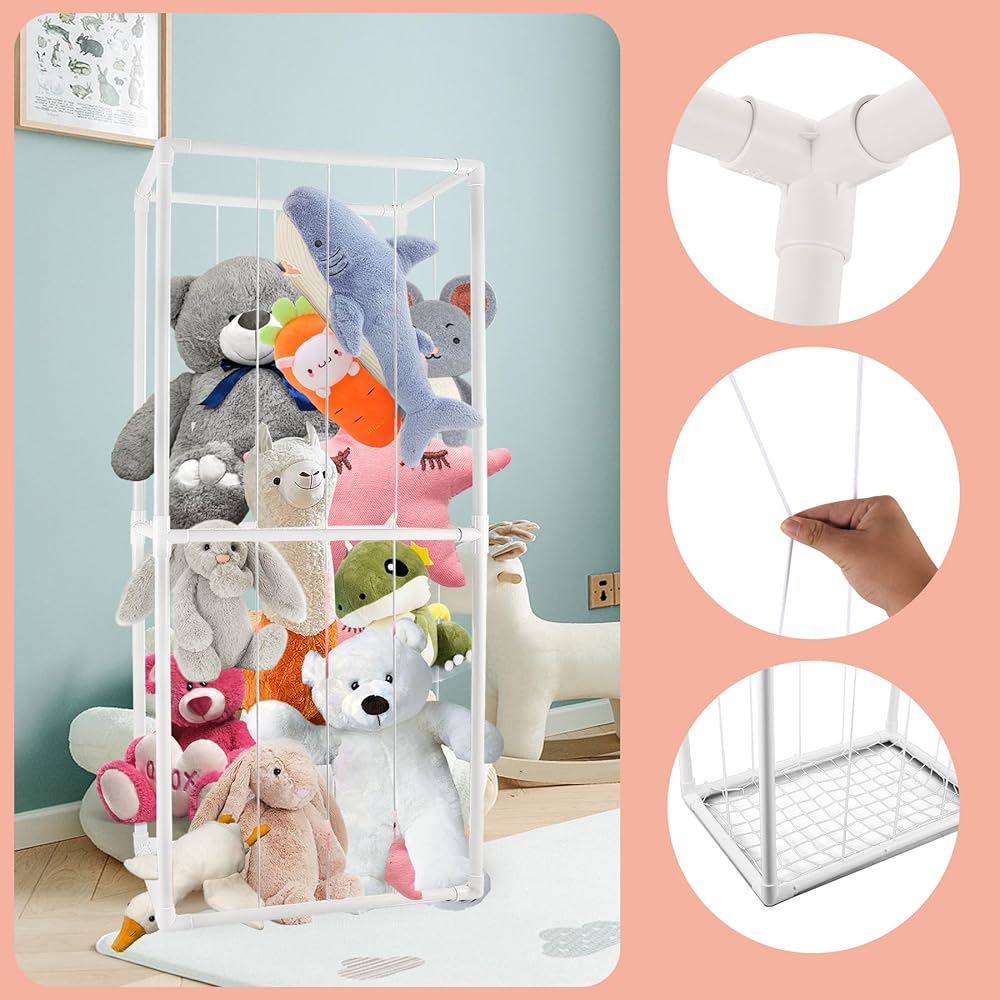 وحدة تخزين حديقة الحيوانات المحشوة من Heuyrao، منظم حيوانات محشو بسعة كبيرة مع شريط مطاطي، قفص حديقة حيوانات محشو من مادة PVC للغرفة (62 * 23 * 15 بوصة)