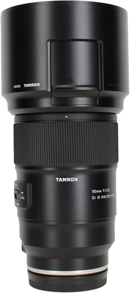 The Tamron 90mm f/2.8 Di III VXD Macro Lens for Sony E-mount cameras offers remarkable versatility for macro and portrait shooting. Featuring 1:1 magnification and a close 9.1" focusing distance, it excels in capturing intricate details of small subjects, while its telephoto range and f/2.8 aperture make it a top choice for portraiture with gorgeous depth-of-field effects. Designed for ease of use, it includes advanced features like a focus limiter switch for optimized autofocus performance, an assignable focus set button, and compatibility with the Tamron Lens Utility, allowing tailored adjustments and updates. The 12-blade diaphragm ensures smooth bokeh and creative starburst highlights, enhancing your artistic potential. Built to endure challenging environments, the lens incorporates moisture-resistant construction with fluorine and BBAR-G2 coatings, minimizing flare and ghosting for high-quality images. Its compact and lightweight design, paired with a hood featuring a sliding filter window, makes this lens an excellent choice for photographers on the go.